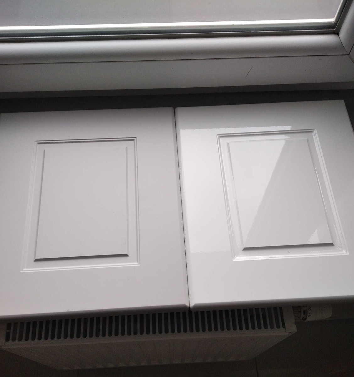 Apatinės spintelės priekinės dalies spalva: šviesiai pilka matinė / balta blizgi