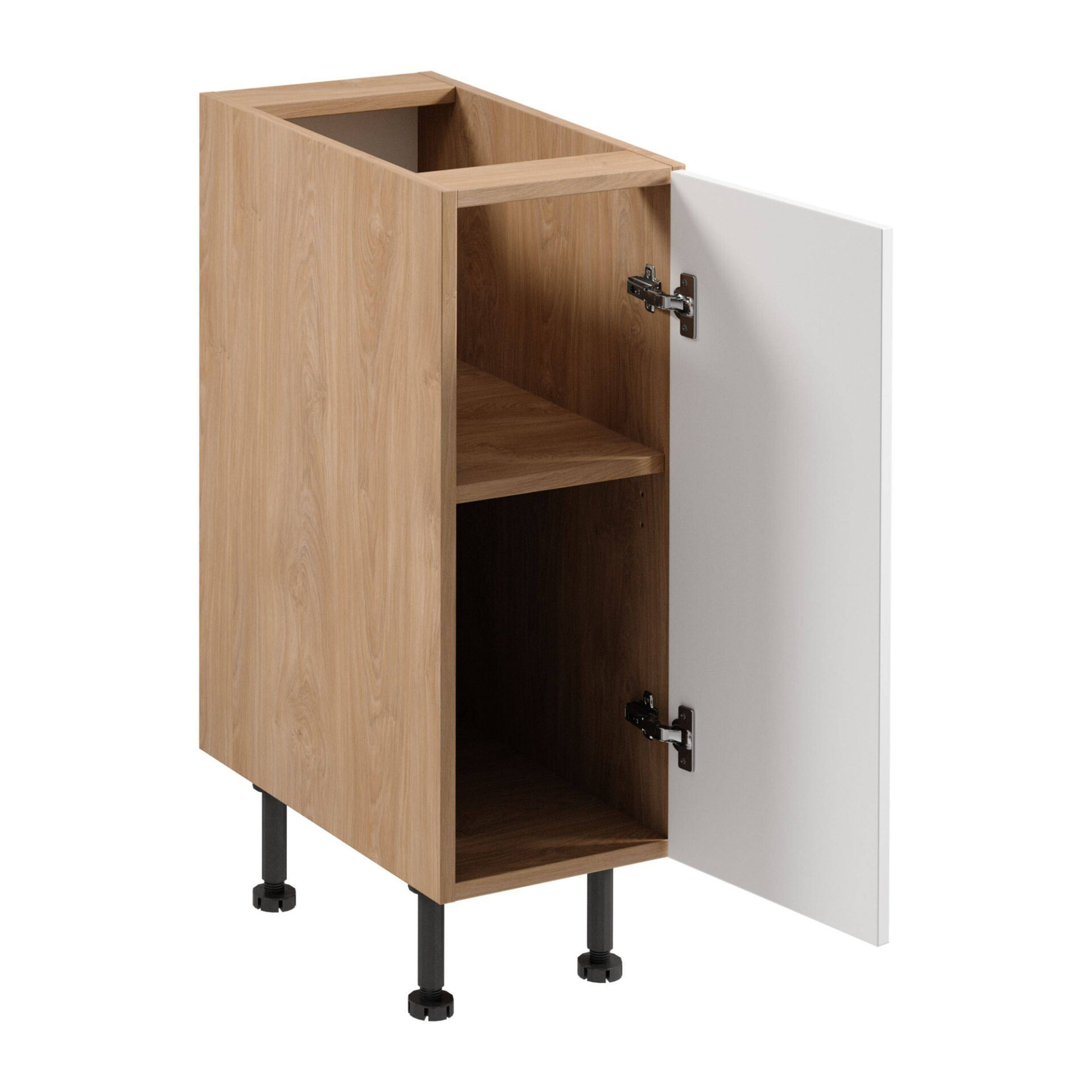 Atraskite eleganciją ir funkcionalumą gryniausia forma su „Sorento D30 P/L“ vienų durų apatine virtuvės spintele. Ši unikali spintelė – tai tobulas modernaus dizaino ir subtilaus stiliaus derinys, puikiai papildantis bet kurią virtuvę. Matinės baltos spalvos priekis suteikia gaivumo ir elegantiškumo įspūdį, o Puccini spalvos korpusas – jaukumo ir šilumos pojūtį. Šis spalvų derinys paverčia šią spintelę nepakeičiamu jūsų virtuvės elementu, harmoningai derančiu su kitais baldais. „Gała Meble“ dizaineriai daugiausia dėmesio skyrė kokybei ir estetikai. Spintelė pagaminta iš patvarios MDF ir itin atsparios laminuotos plokštės. Dėmesys smulkiausioms detalėms matomas aukso spalvos metalinėse rankenose, kurios suteikia prabangos. Reguliuojamos kojelės užtikrina stabilumą ir aukščio reguliavimą, todėl spintelė yra nepaprastai praktiška kasdieniam naudojimui. Funkcionalumas yra pagrindinis šios spintelės aspektas. Dėl užsegamų vyrių ir švelnaus uždarymo mechanizmų durelių atidarymas ir uždarymas yra praktiškai tylus. Šis sprendimas kasdienius virtuvės darbus paverčia dar malonesniais, o maisto gaminimas įgauna naują komforto dimensiją. Be to, spintelė sukurta savarankiškam surinkimui, suteikiant rankų darbo baldo pasitenkinimą ir galimybę ją pritaikyti pagal individualius poreikius.