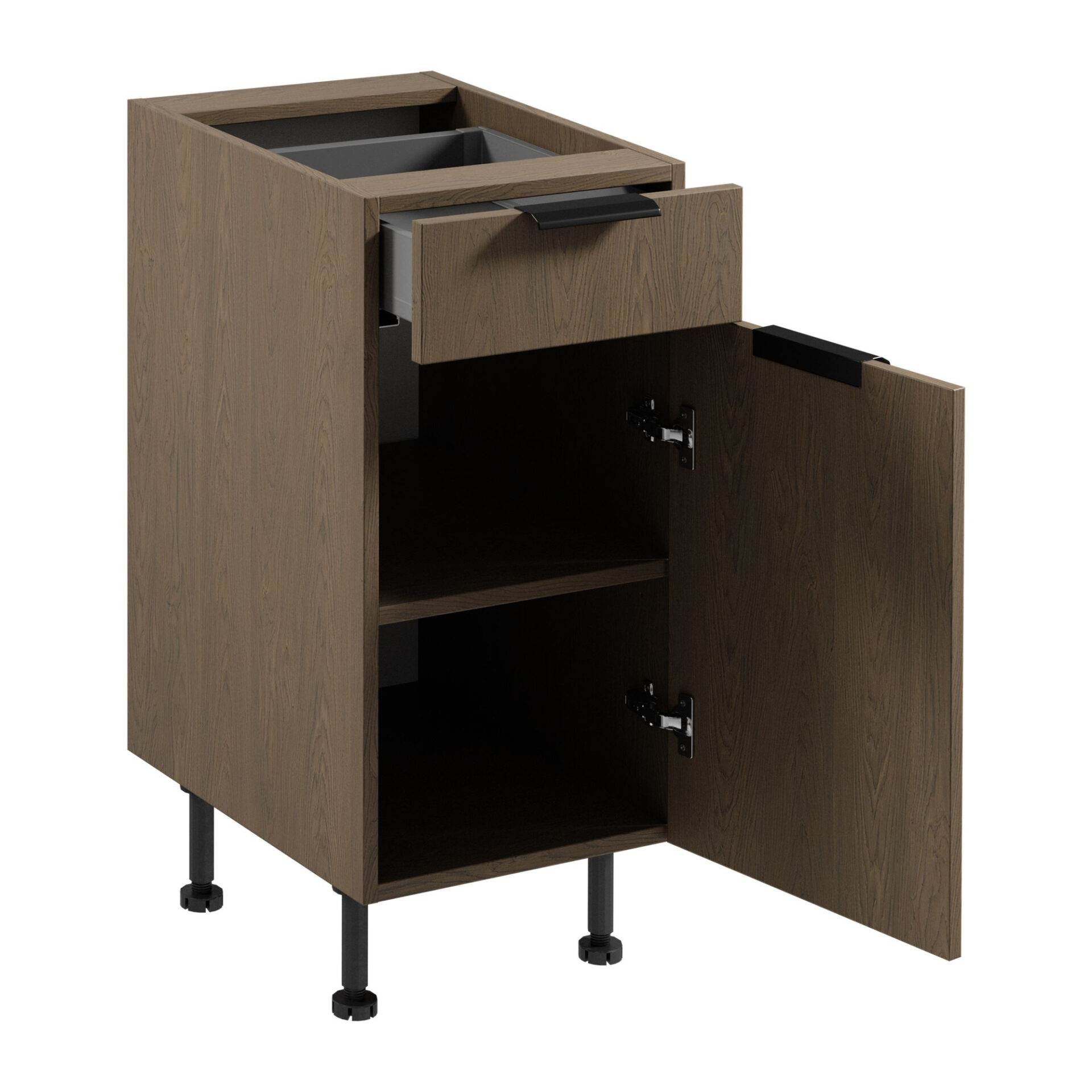 Atraskite unikalią „Gała Meble“ 1D1S „Sorento“ virtuvės spintelę, kuri papildys jūsų interjerą moderniu stiliumi ir funkcionalumu. Ši elegantiška spintelė, padengta „Baltic Storm“ spalva, traukia dėmesį minimalistinėmis linijomis ir subtiliu atspalviu, puikiai papildydama įvairius virtuvės dizainus. Funkcionalumas dera su estetika, todėl tai puikus pasirinkimas visiems, kurie vertina praktiškumą. Ši spintelė, užtikrindama patogią prieigą prie būtiniausių virtuvės priedų, suderina erdvumą su moderniomis funkcijomis, tokiomis kaip pilno ištraukimo bėgeliai ir užsegami vyriai, užtikrinantys tylų uždarymą. Dėl šių savybių galite mėgautis ne tik stilinga išvaizda, bet ir patogiu naudojimu kiekvieną dieną. Kitas neginčijamas privalumas – reguliuojamas kojelių aukštis, leidžiantis pritaikyti spintelę prie konkrečios jūsų virtuvės erdvės. Jau nekalbant apie medžiagas, iš kurių pagaminta „Sorento“ virtuvės spintelė. 18 mm storio laminuota plokštė garantuoja didelį patvarumą ir atsparumą kasdieniams pažeidimams. Juodos plastikinės kojelės suteikia visam baldui modernumo ir stabilumo, todėl šis baldas yra ne tik gražus, bet ir praktiškas pasirinkimas jūsų namams.