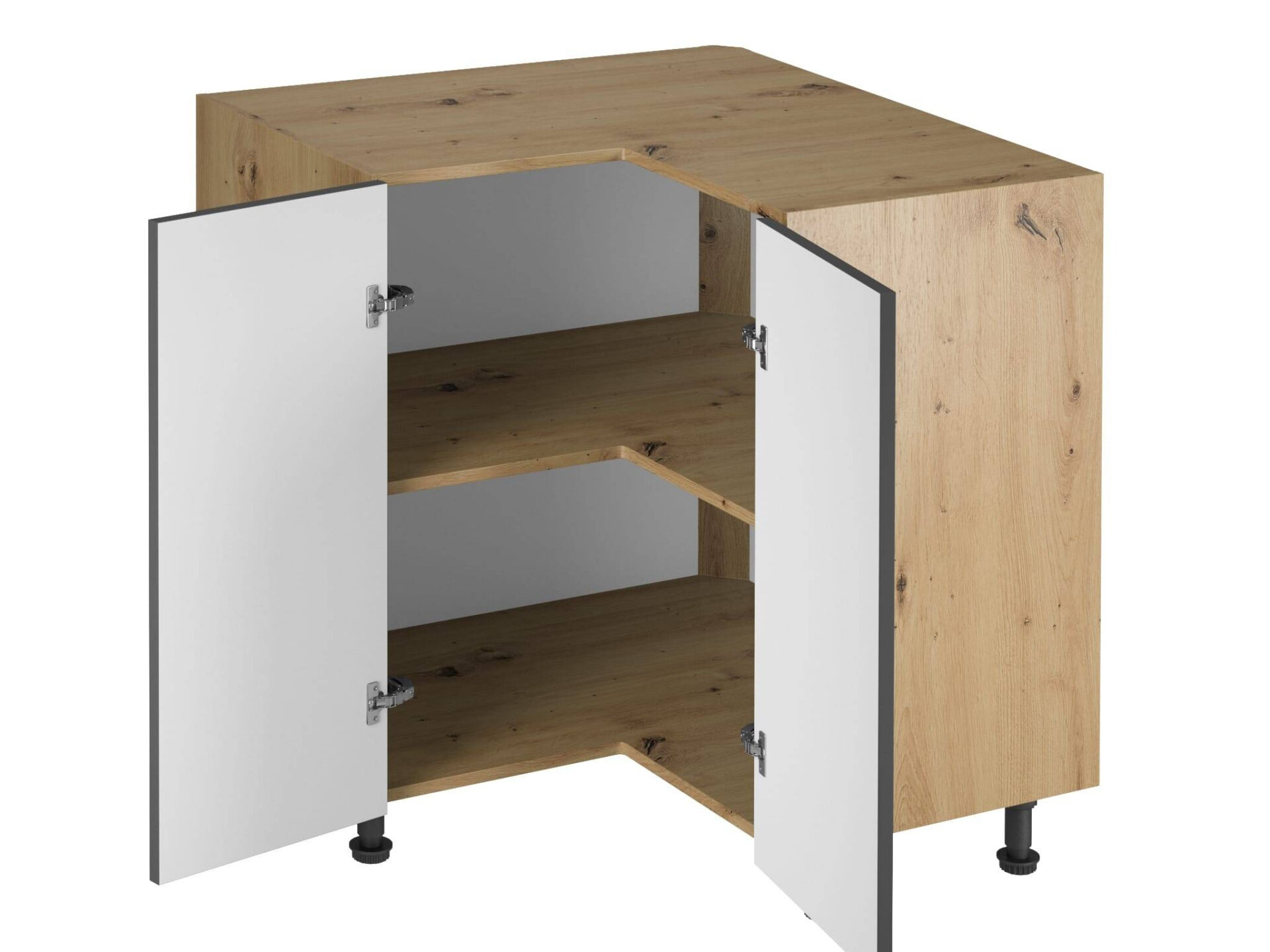 Apatinė 2 durų kampinė virtuvės spintelė D90N be stalviršio, pilka, Langen