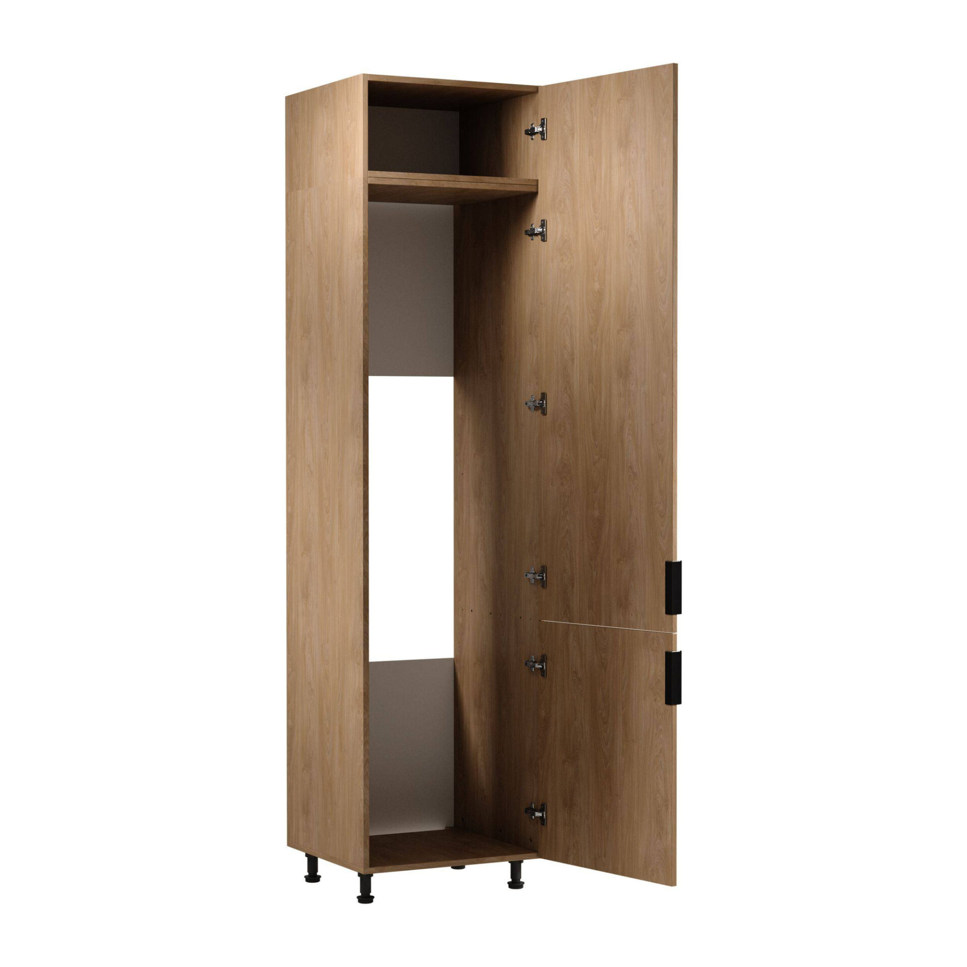 Elegancija ir funkcionalumas susitinka „Puccini Sorento D60ZLN 2-D“ apatinėje virtuvės spintelėje su šaldytuvu. Graži „Puccini“ spalva suteiks jūsų virtuvei šilumos ir rafinuoto stiliaus, tikrai pradžiugindama kiekvieną svečią. Tai puikus sprendimas tiems, kurie ieško modernaus dizaino ir kasdienio praktiškumo. Aukštos kokybės medžiagos, iš kurių pagaminta ši spintelė, užtikrina ne tik patvarumą, bet ir eleganciją dėl laminuotų fasadų ir korpuso. Juodos metalinės rankenos suteikia spintelei modernaus charakterio, todėl ji tampa unikaliu akcentu bet kurioje virtuvės erdvėje. Jų dėka jūsų prietaisai taps neatsiejama dekoro dalimi. Taip pat verta paminėti išskirtinį šios spintelės funkcionalumą. Ji sukurta taip, kad būtų lengva montuoti šaldytuvą, leidžiant maksimaliai išnaudoti erdvę jūsų namuose. Reguliuojamos kojelės leidžia reguliuoti aukštį – tai papildomas privalumas, didinantis komfortą. Aukštos kojelės suteikia lengvumo ir modernumo, teigiamai paveikdamos visos virtuvės estetiką.