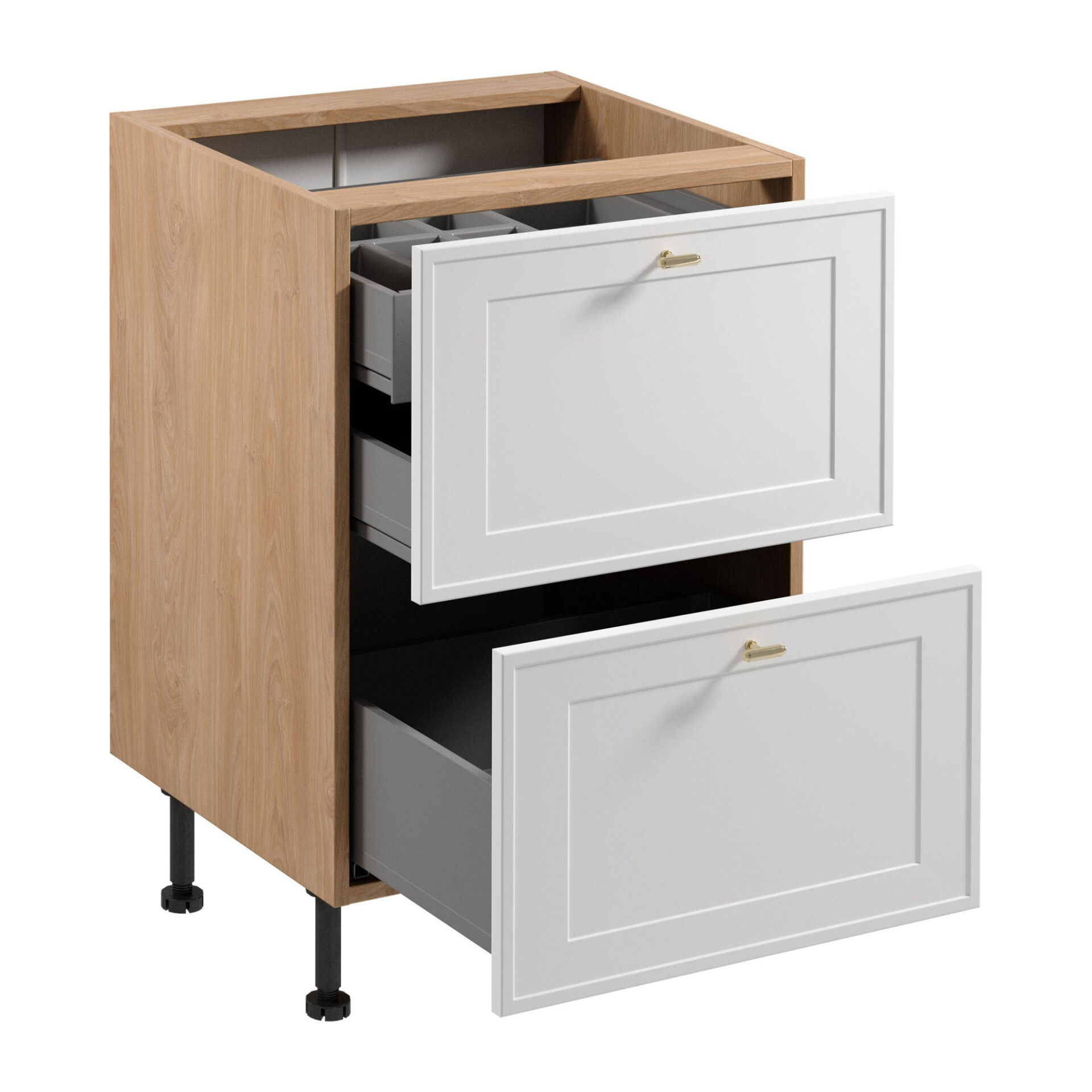 Apatinė virtuvės spintelė 2S su stalo įrankių įdėklu Sorento D60S2+1 AX Puccini matinės baltos spalvos rėmeliu