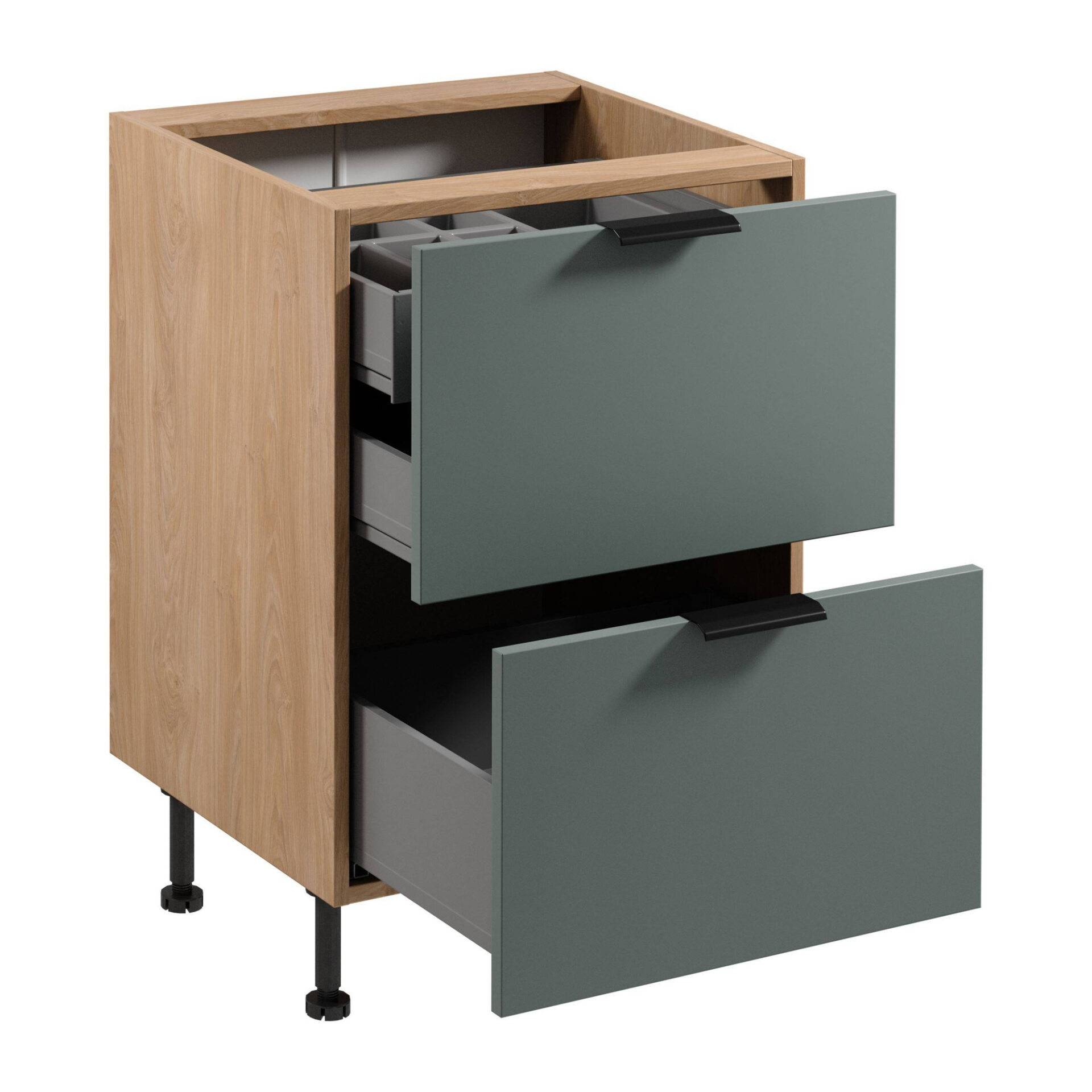 Apatinė virtuvės spintelė 2S su stalo įrankių įdėklu Sorento D60S2+1 AX Puccini žalia
