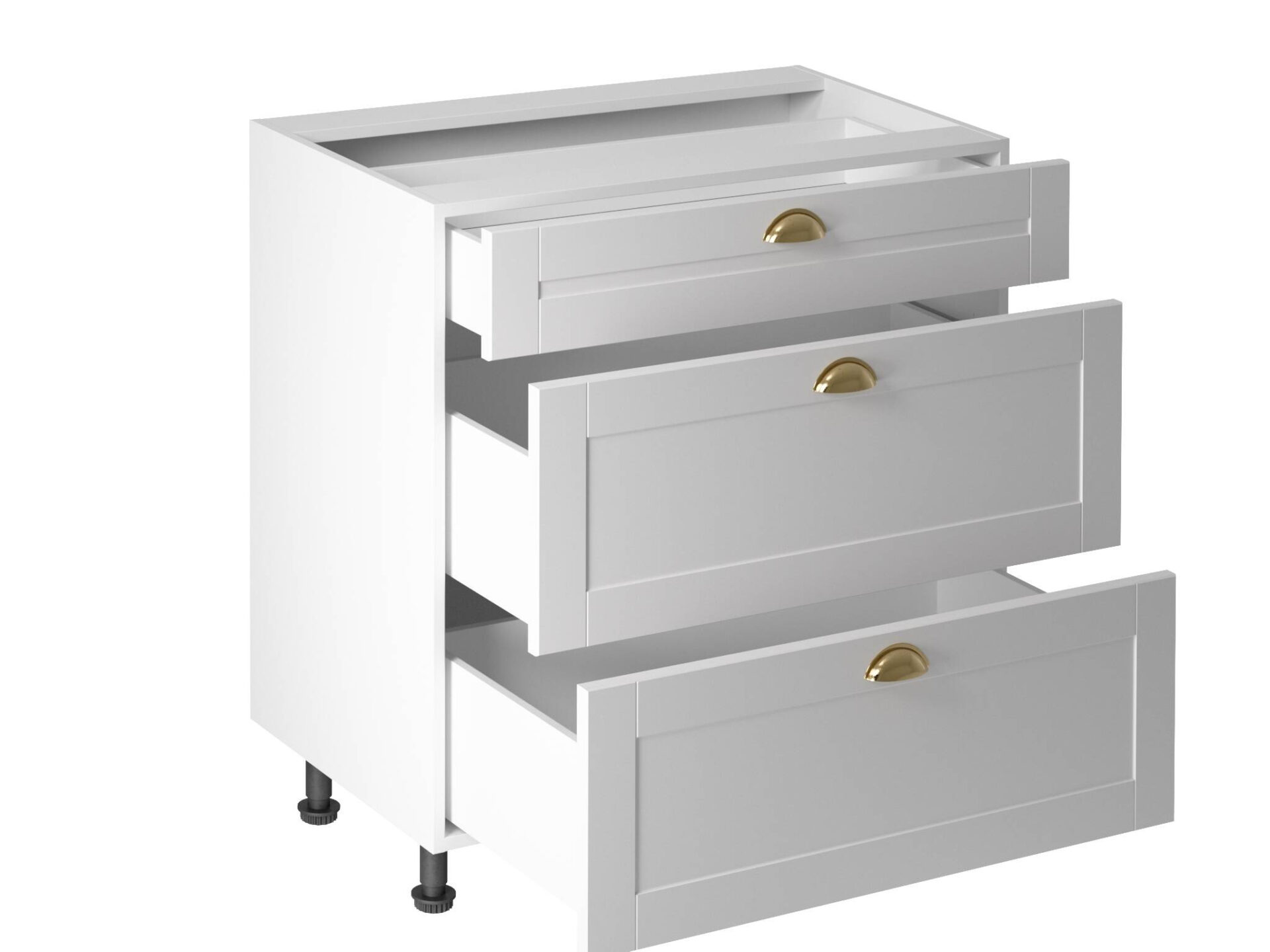 Apatinė virtuvės spintelė su 3 stalčiais, D80S3, Linea balta, matinė, balta
