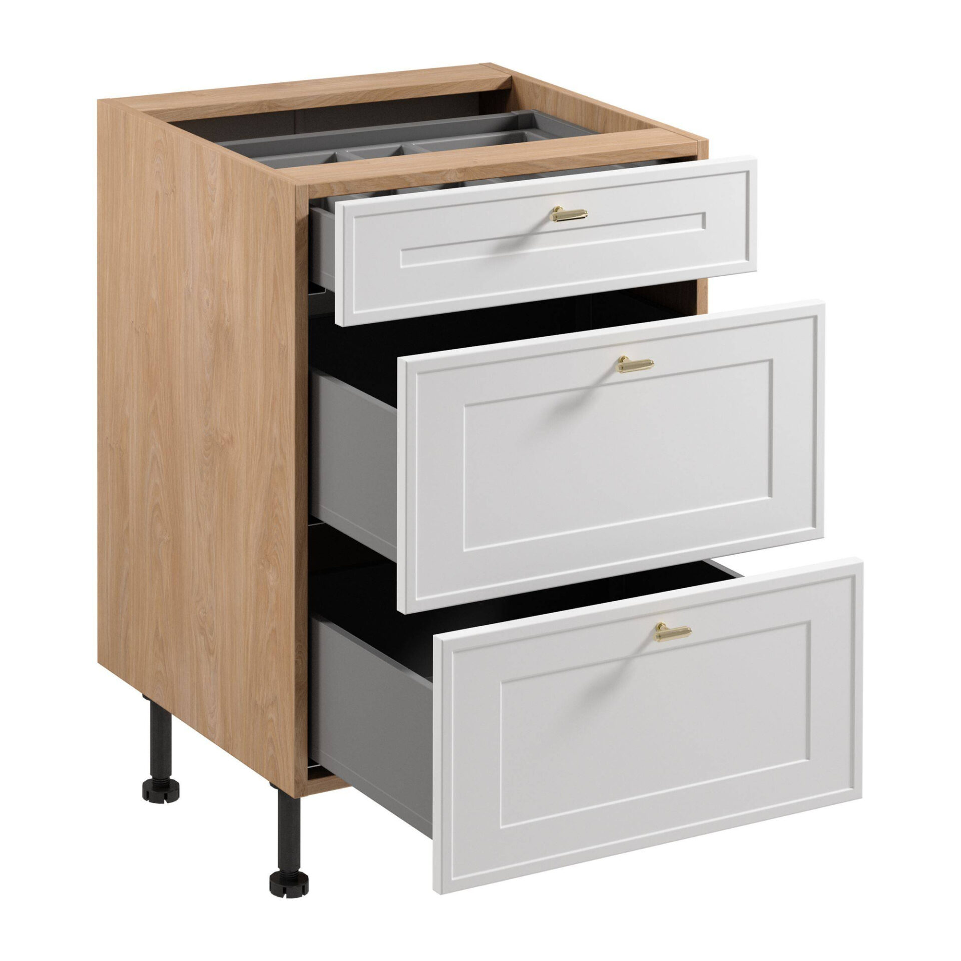 Apatinė virtuvės spintelė 3S su stalo įrankių įdėklu Sorento D60S3 AX Puccini matinės baltos spalvos rėmeliu