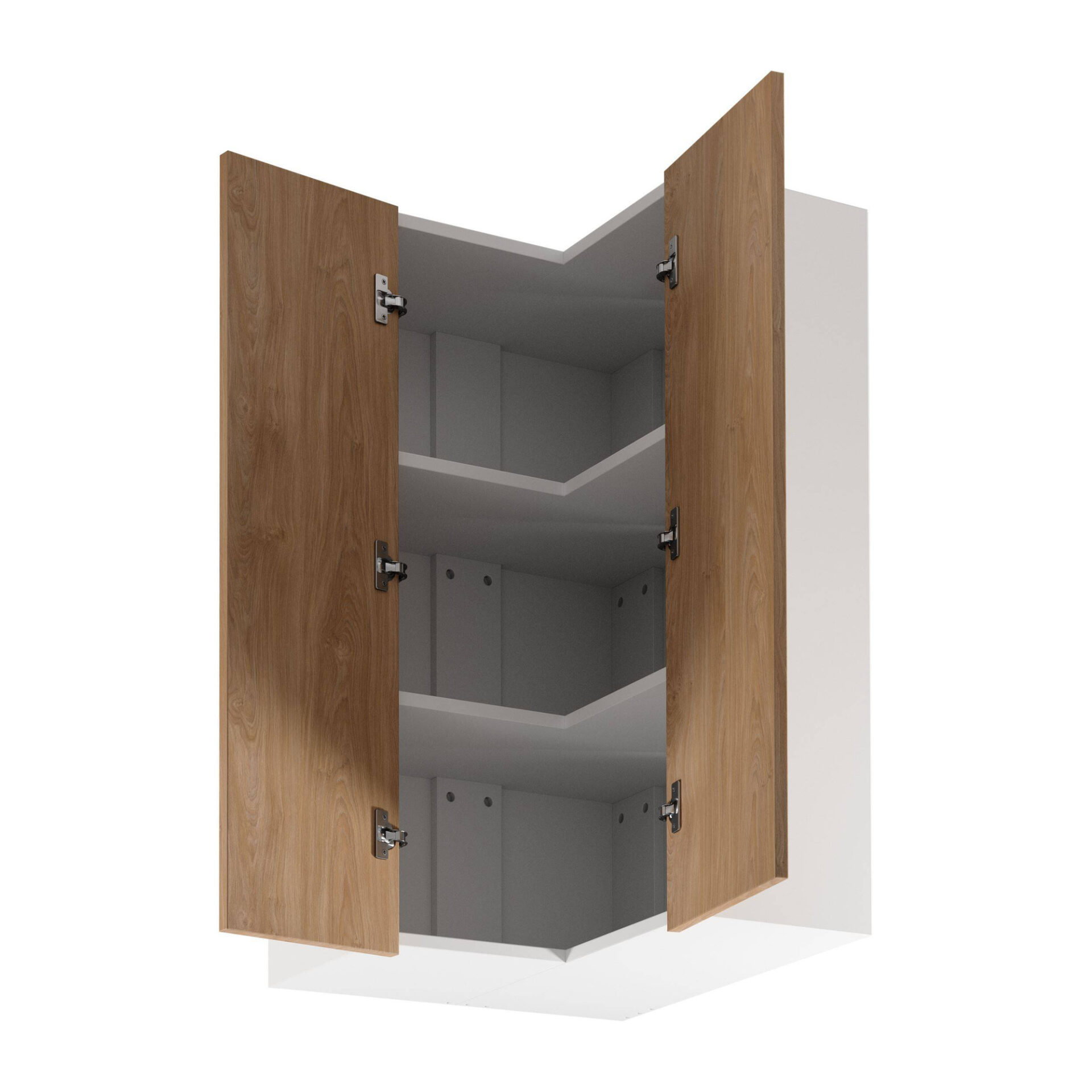 Būkite pirmas aprašęs “„Sorento G60N2“ kampinė 2D viršutinė virtuvės spintelė, matinės baltos spalvos, „Puccini“”