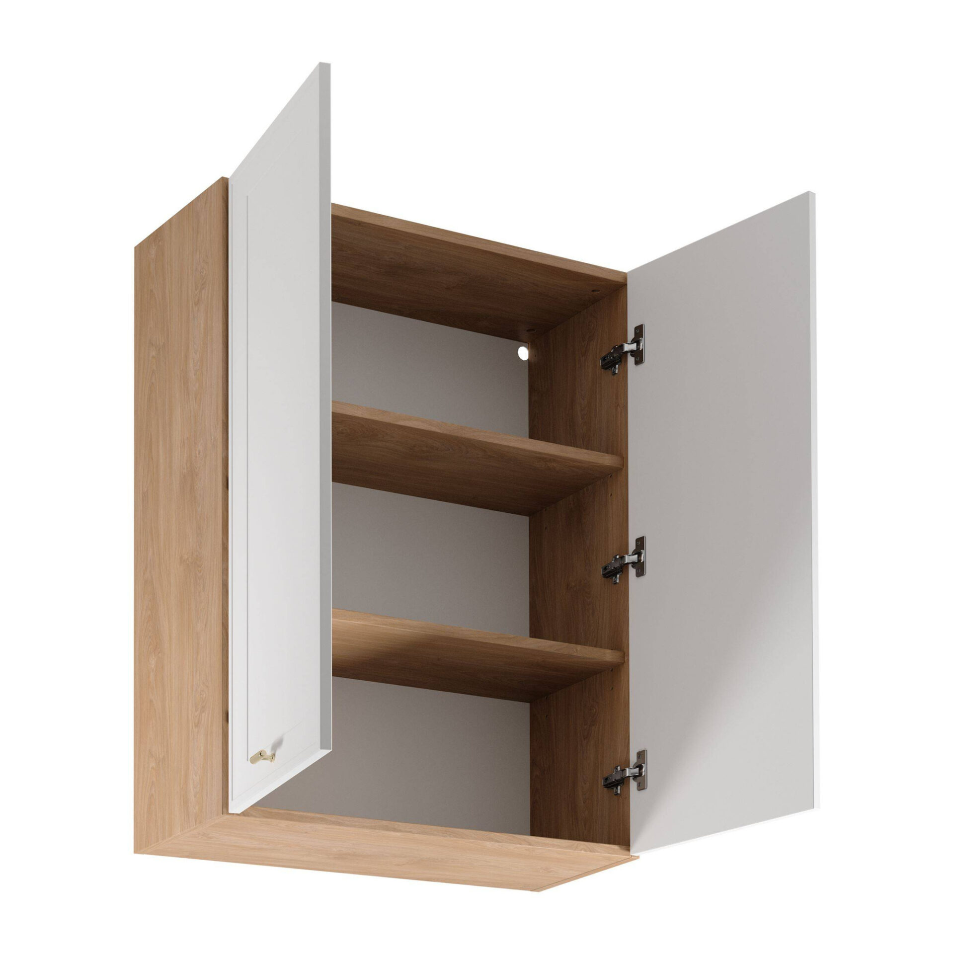 Atraskite subtilų eleganciją su „Sorento G80“ viršutine virtuvės spintele, kuri išsiskiria šiuolaikišku dizainu. Matinės baltos spalvos fasadas susilieja su Puccini spalvos korpusu, sukurdami harmoningą ir rafinuotą visumą. Kompaktiškas dizainas leidžia sukurti estetiškai patrauklų virtuvės interjerą, suteikdamas jam lengvumo ir gaivos pojūtį. Tai puikus pasirinkimas minimalistams, vertinantiems paprastumą kartu su prabangos prieskoniu. „Sorento“ spintelės funkcionalumas atsispindi praktiškuose sprendimuose. Dėl „Clip-On“ švelnaus uždarymo sistemos durelių atidarymas ir uždarymas tampa beveik tylus, todėl kasdienis naudojimas yra patogesnis. Be to, galimybė montuoti dureles kairėje arba dešinėje pusėje suteikia visišką dizaino lankstumą, todėl šią spintelę lengva pritaikyti bet kurioje virtuvės erdvėje. Aukso spalvos metalinė rankena suteikia elegancijos ir klasės, traukia akį subtilia, tačiau ryškia detale. Ši detalė įprastą spintelę paverčia unikaliu dekoratyviniu akcentu. Dėl aukštos kokybės medžiagų, tokių kaip MDF fasaduose ir laminuota plokštė korpuse, naudojimo galite būti tikri, kad spintelė tarnaus jums daugelį metų, išlaikydama savo išvaizdą ir funkcionalumą.