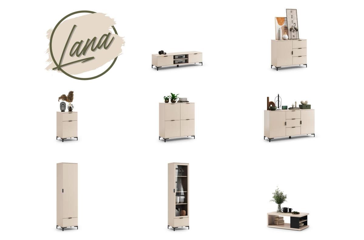 Būkite pirmas aprašęs “LANA RTV-150 smėlio spalvos (šampano spalvos) spintelė – TV staliukas svetainei su stalčiais”