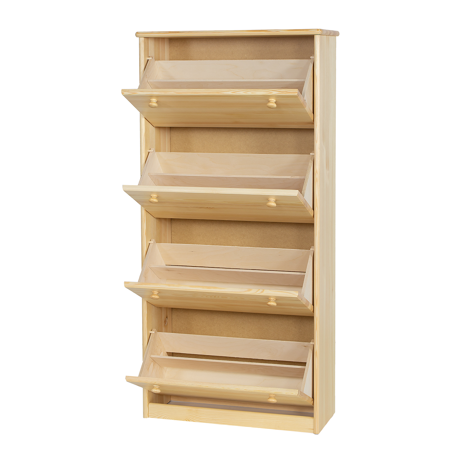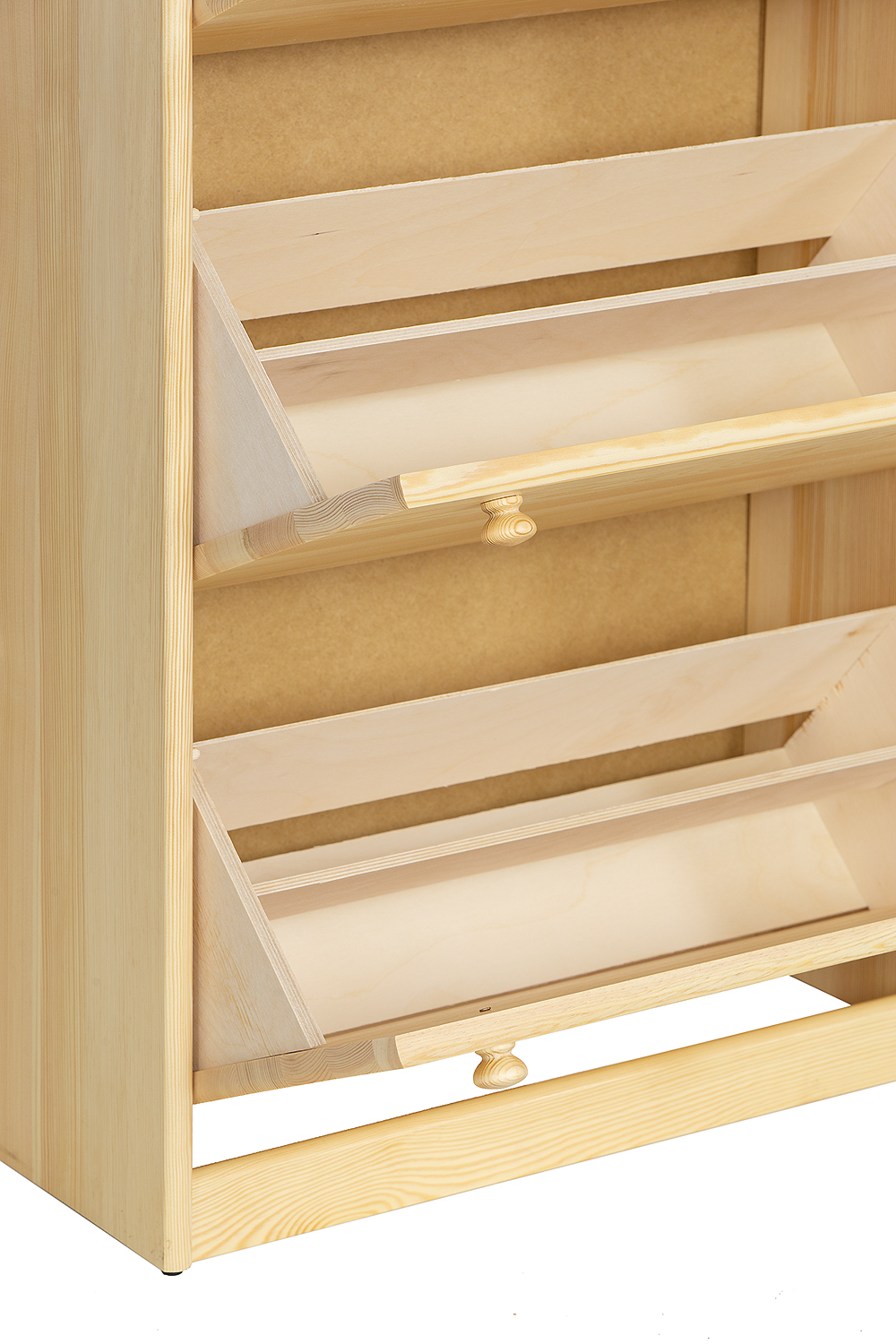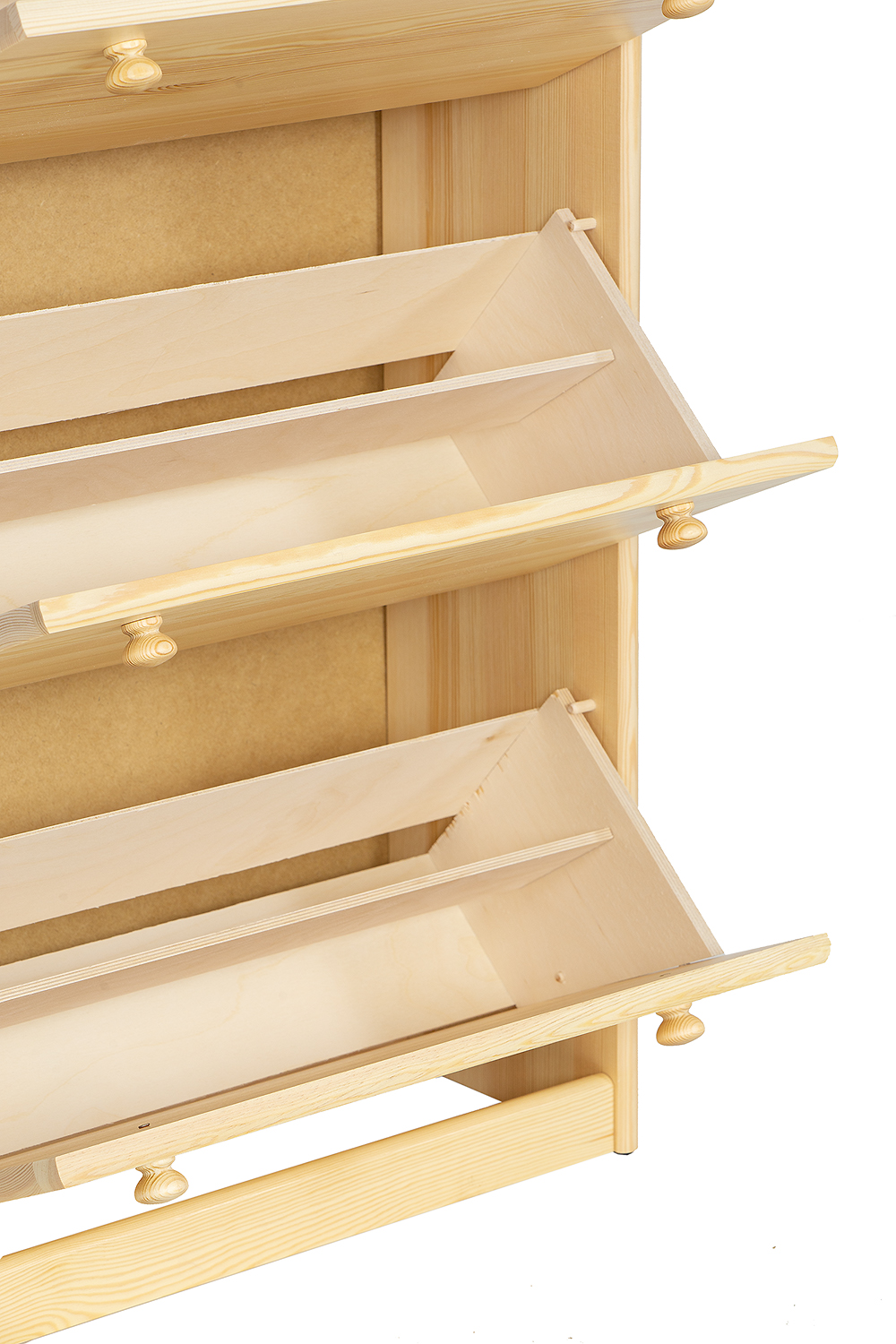 Funkcionali batų spintelė SB110, pagaminta iš tvirtos pušies medienos, puikiai tinka prieškambariui. Viduje yra keturi funkcionalūs skyriai, kuriuose lengvai tilps visų namų ūkio narių avalynė. Spintelės konstrukcija padengta stabiliu stalviršiu, puikiai tinkančiu kepurių krepšeliui ar raktų pakabukui.