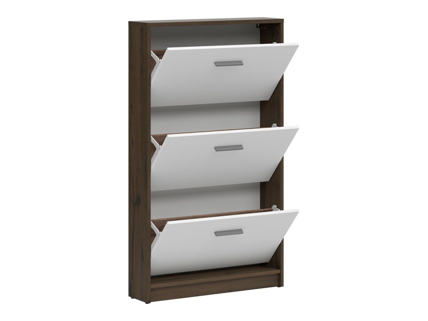 „Nepo Plus“ batų spintelė – sprendimas didelei šeimai arba tiems, kurie turi didelę batų kolekciją. Trys atskiri skyriai leidžia lengvai susisteminti daiktus – galite rūšiuoti batus pagal naudotoją, sezoną ar progą. Atlenkiami fasadai leidžia greitai pasiekti kiekvieną skyrių, o paprastos rankenos užtikrina patogų naudojimą. Stilius ir patvarumas.