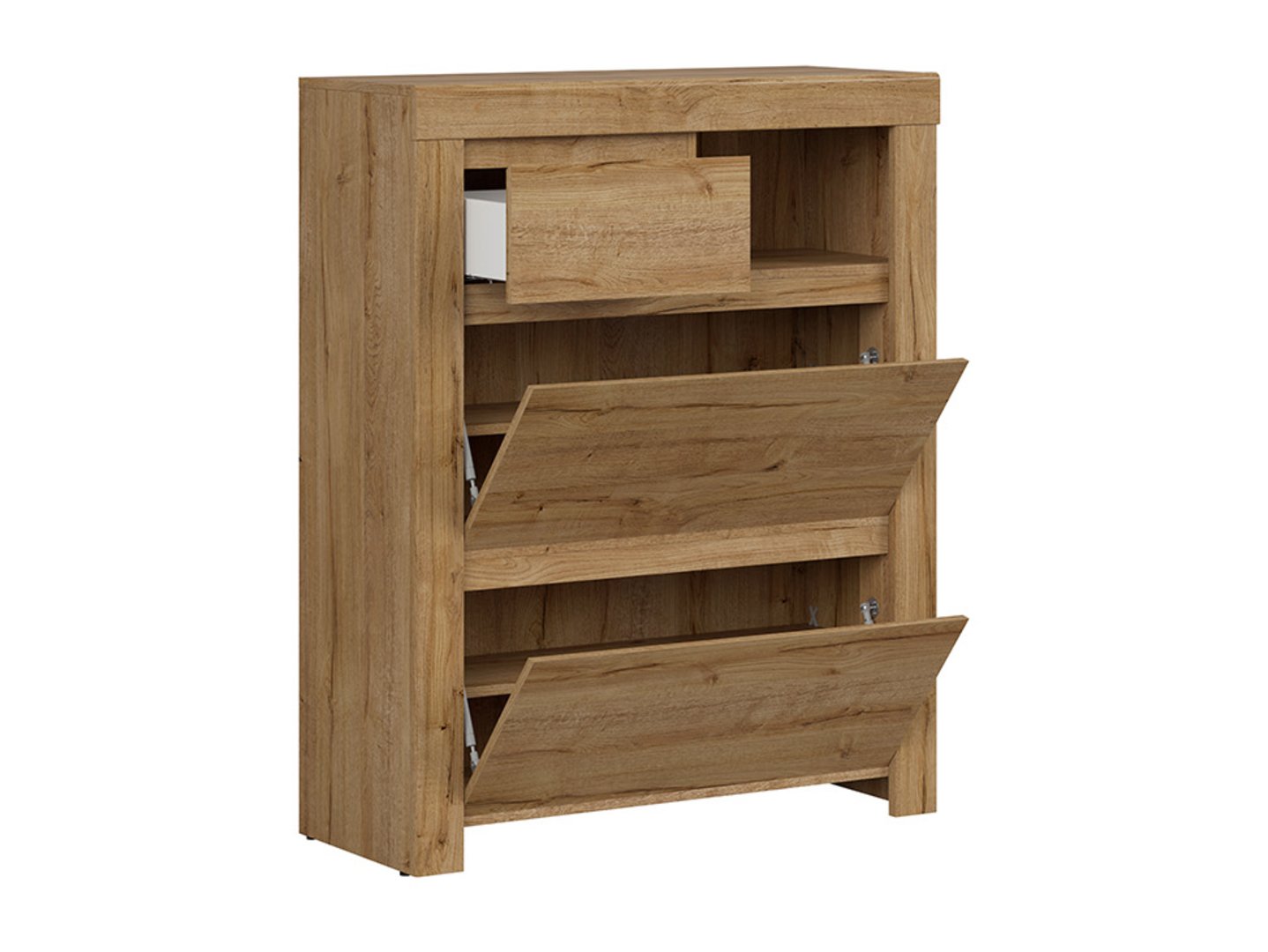 „Holten“ lentyna – tobulas funkcionalumas jūsų prieškambaryje. Prieškambaris – tai vieta, kuri dažnai nepakankamai įvertinama, tačiau nepaprastai svarbi kasdieniame gyvenime. Tai vieta, kur pasitinkame svečius, kur pradedame ir baigiame kiekvieną dieną. Todėl svarbu užtikrinti, kad jis būtų funkcionalus, estetiškai patrauklus ir gerai organizuotas. Laimei, yra baldas, kuris gali padėti jums pasiekti šį tikslą – „Holten“ lentyna. Moderni „Holten“ linija – tai baldų serija, skirta prieškambariui, kurios pagrindinis dizaino principas – praktiškas erdvės valdymas. „Holten“ lentyna yra puikus to pavyzdys, derinantis eleganciją ir funkcionalumą. Vienas iš pagrindinių „Holten“ lentynos bruožų – dvi dvigubos išskleidžiamos batų spintelės. Šios spintelės leidžia laikyti savo batų kolekciją, išlaikant tvarką prieškambaryje. Išskleidžiamos durys leidžia lengvai pasiekti batus, tuo pačiu išlaikant baldo estetinį patrauklumą. Be to, „Holten“ lentynoje yra kompaktiškas stalčius su švelniai užsidarančiomis bėgelėmis. Tai užtikrina, kad kiekvienas stalčius atsidarytų ir užsidarytų sklandžiai ir tyliai. Tai puikus sprendimas mažesniems daiktams, pavyzdžiui, raktams ar pirštinėms, laikyti. Dar vienas „Holten“ lentynų privalumas – atvira lentyna, puikiai tinkanti skėčiui. Tai praktiškas sprendimas, ypač lietingomis dienomis, kai norite greitai paslėpti skėtį įėję į namus. Ši lentyna palaikys švarą ir tvarką jūsų prieškambaryje. Be funkcionalumo, „Holten“ lentynų blokas taip pat išsiskiria elegantiška išvaizda. Lygūs baltos veidrodinės apdailos fasadai sukuria minimalistinį pagrindą, kuris puikiai dera prie modernaus interjero. Bloką puošia „Wotan“ ąžuolo stalviršis, atspindintis natūralaus medžio grožį. Šis baltos ir medžio apdailos kontrastas suteikia „Holten“ lentynų blokui unikalaus charakterio ir elegancijos. Taip pat verta atkreipti dėmesį į dizaino detales. Pastorintos lentynų sienelės įrėmina fasadus be rankenėlių, suteikdamos jam modernų ir švarų vaizdą. Dėl šio minimalistinio dizaino „Holten“ lentynų blokas puikiai tinka įvairiems interjero stiliams – nuo modernaus iki klasikinio. Jei svajojate apie visapusišką prieškambario dizainą, „Holten“ lentynų blokas gali būti didesnio komplekto dalis. „Holten“ kolekcijoje taip pat yra veidrodis ir kiti elementai, kuriuos galima derinti, kad būtų sukurta darni ir harmoninga erdvė. Tai leidžia jums susikurti svajonių prieškambario išdėstymą, kuris būtų ne tik praktiškas, bet ir estetiškai patrauklus. Trumpai tariant, „Holten“ lentynų blokas yra baldas, kuris žavi savo funkcionalumu ir estetika. Tai puikus pasirinkimas visiems, kurie vertina tvarką ir eleganciją savo prieškambaryje. Dėl įvairių daiktų laikymo sprendimų ir modernaus dizaino „Holten“ lentynų blokas gali tapti jūsų prieškambario širdimi.