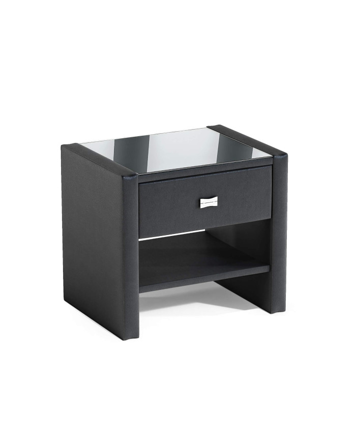 „Polibox“ naktinis staliukas, žemas, apmuštas, su stalčiumi ir niša