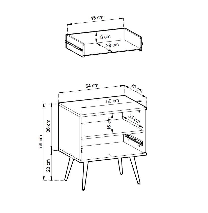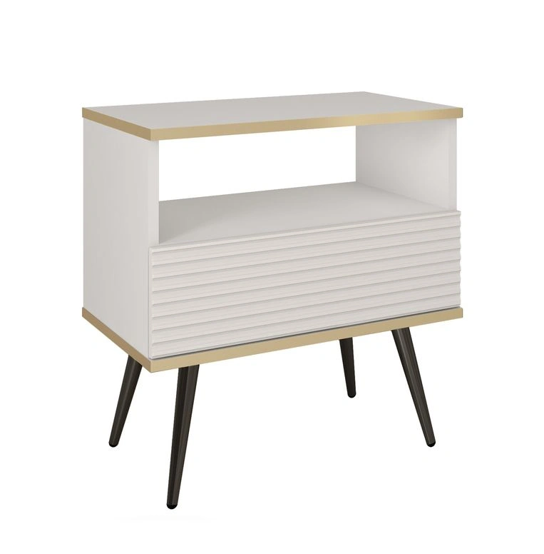 Oro S54 naktinis staliukas su stalčiumi, baltas, griovelių MDF