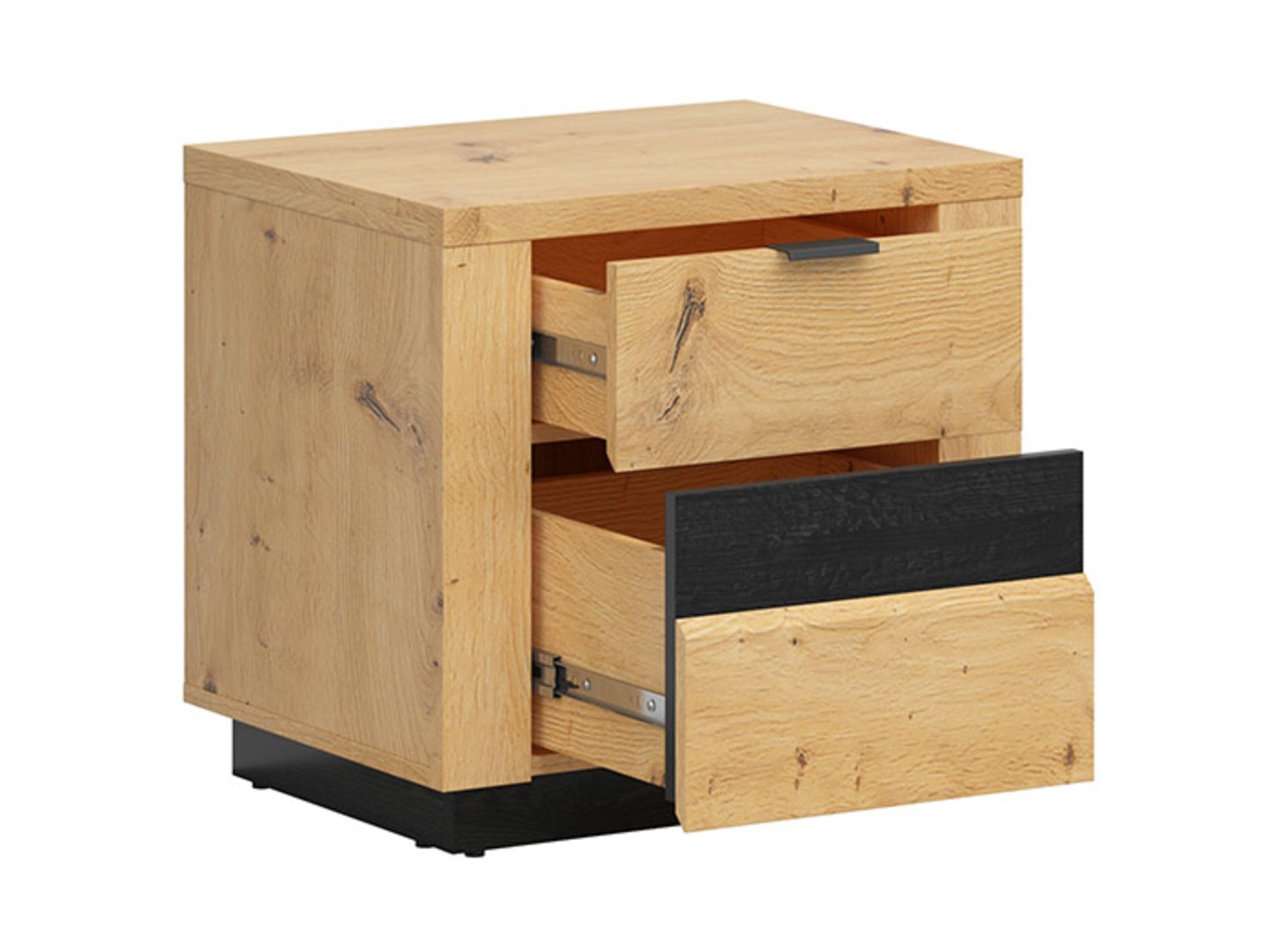 OSTIA naktinis staliukas su dviem stalčiais, 54 cm, ąžuolo imitacija / juoda blizgi spalva