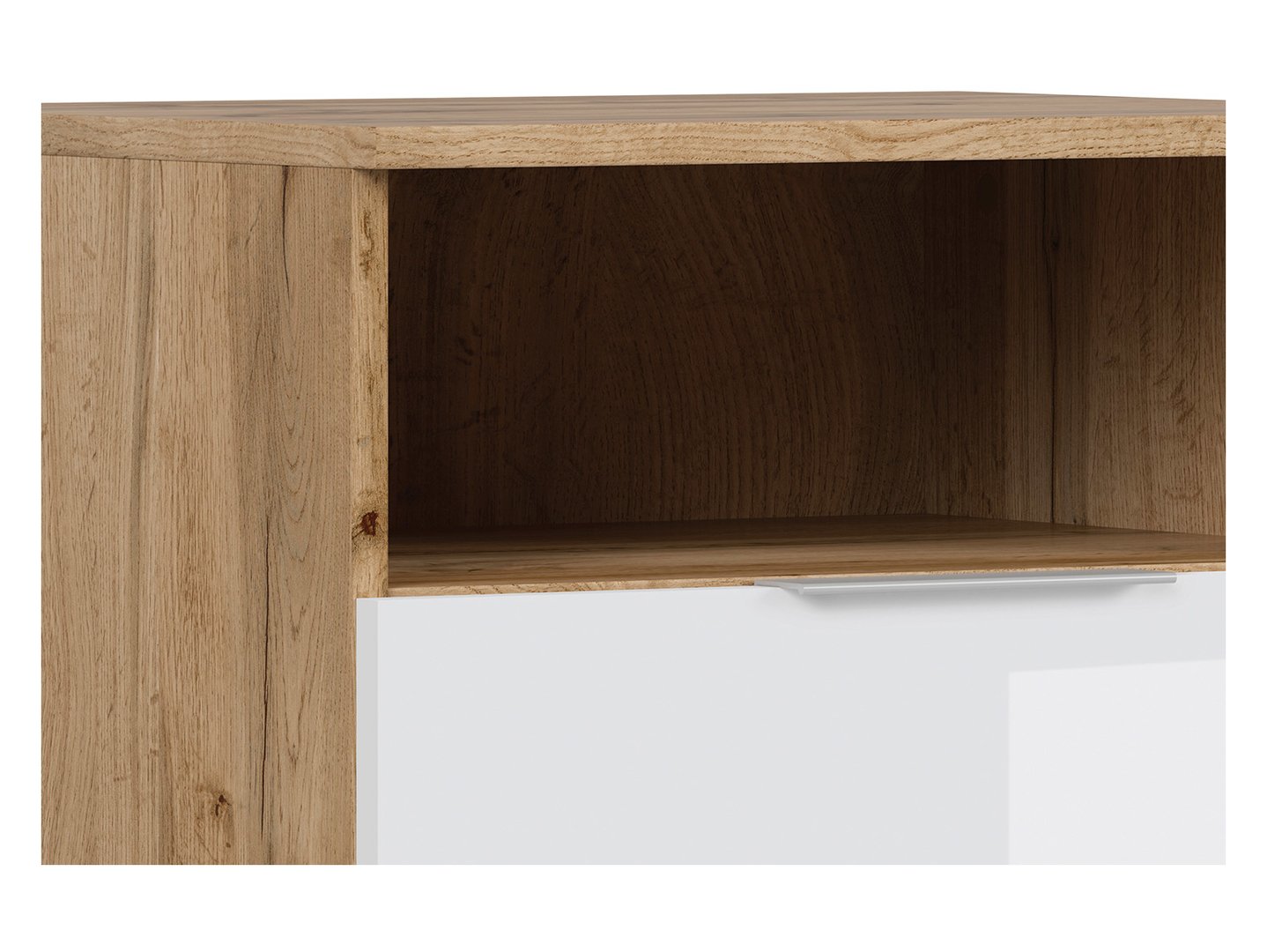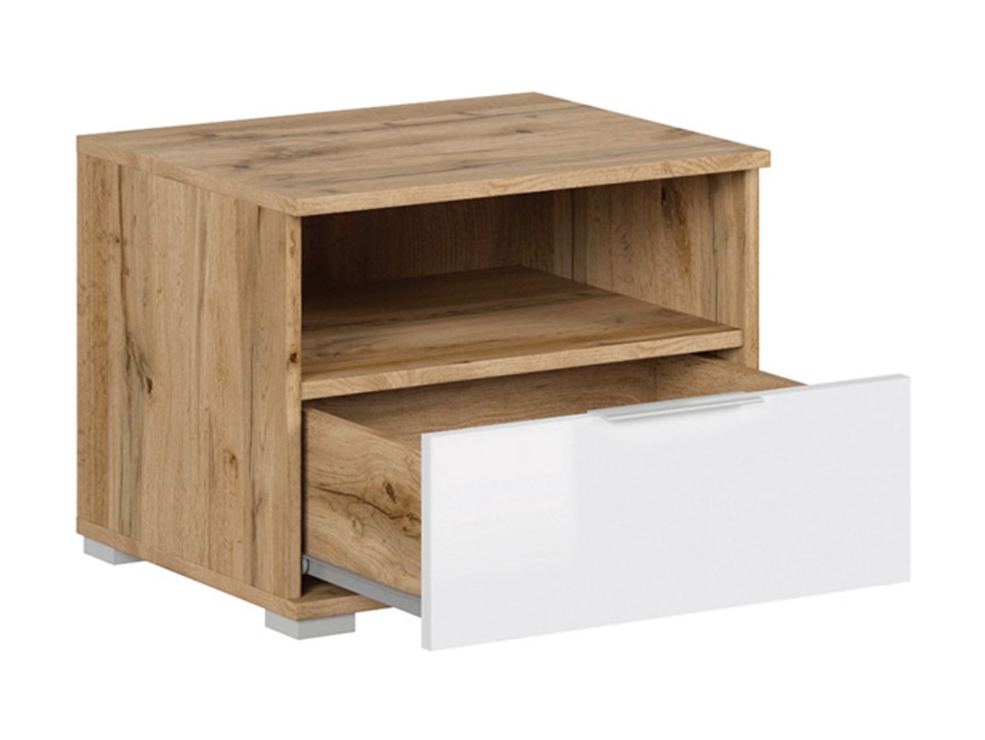 „Zele“ naktinis staliukas – tobulas ryto palydovas. Jei ieškote baldų, kurie ne tik supaprastintų jūsų rytinius ritualus, bet ir suteiktų modernumo jūsų miegamajam, „Zele“ naktinis staliukas yra puikus pasirinkimas. Minimalistinis dizainas ir puikus spalvų pasirinkimas tikrai patrauks jūsų akį. Rytai yra laikas, kai kiekviena sekundė yra svarbi, todėl „Zele“ naktinis staliukas yra neįkainojamas palydovas. Jo stalviršis yra puiki vieta žadintuvui ar telefonui pasidėti, todėl galėsite lengvai jį pasiekti ir patikrinti svarbiausius pranešimus. Praktiškas stalčius yra patikima vieta knygoms, užrašų knygutėms ar žurnalams, kuriuos norite turėti po ranka, laikyti. Tuo tarpu atvira lentyna leidžia eksponuoti mėgstamus dekoratyvinius daiktus ar laikyti kitus smulkius daiktus. Spalvų paletė yra dar vienas „Zele“ naktinio staliuko privalumas. Galite pasirinkti ryškų baltų blizgių fasadų ir „Wotan Oak“ korpuso derinį, kuris suteikia baldui modernų charakterį ir eleganciją. Jei pageidaujate santūresnių spalvų, galite rinktis baldus, visiškai apdailintus „Wotan Oak“ ąžuolu. Jūs sprendžiate, kaip norite, kad atrodytų jūsų miegamasis. Subtilus, priekiniame krašte integruotas rankenėlis yra dar vienas elementas, pabrėžiantis minimalistinę, modernią baldo formą. Tai leidžia „Zele“ naktiniam staliukui išlaikyti stilistinį nuoseklumą su likusia kolekcijos dalimi. Tačiau tai dar ne visi „Zele“ naktinio staliuko privalumai. Galite išnaudoti jo privalumus derindami jį su kitais „Zele“ kolekcijos baldais. Tai leis jums susikurti savo svajonių miegamąjį, kuriame minimalistinis dizainas ir funkcionalumas dera tarpusavyje. Trumpai tariant, „Zele“ naktinis staliukas yra ne tik baldas, lydintis jus kiekvieną rytą. Tai taip pat dizaino elementas, suteikiantis jūsų miegamajam modernumo ir elegancijos. Dėl savo funkcionalumo, puikios spalvų paletės ir galimybės jį derinti su kitais „Zele“ kolekcijos baldais, šis naktinis staliukas tampa neįkainojama jūsų kasdienio gyvenimo ir asmeninio stiliaus dalimi. Nedvejokite, suteikite savo miegamajam naują dimensiją su „Zele“ naktiniu staliuku.