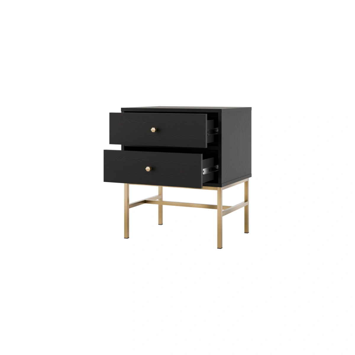 Tokyo 2S naktinis staliukas, juodas – su dviem stalčiais.