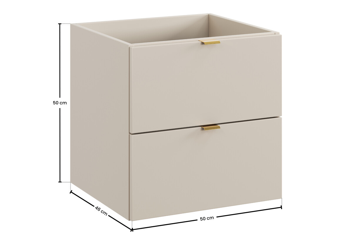Dalia Cashmere 2S 50 cm kriauklės spintelė. Dalia Cashmere 50 cm kriauklės spintelė derina minimalistinį dizainą ir funkcionalumą. Lygūs subtilaus kašmyro atspalvio fasadai ir stilingos trijų spalvų rankenėlės leidžia suasmeninti spintelę. Du erdvūs stalčiai su švelnaus uždarymo sistema. Matmenys: Plotis (cm): 50 Gylis (cm): 46 Aukštis (cm): 50 Svoris (kg): 15 Techniniai duomenys: Priekinės dalies medžiaga: Laminuota plokštė Korpuso medžiaga: Laminuota plokštė Priekinės dalies spalva: Matinė kašmyro spalva Korpuso spalva: Matinė kašmyro spalva Rankenos spalva: Pakuotėje – blizgi auksinė, matinė juoda, blizgus chromas Rankenos medžiaga: Plastikas Bėgeliai: Švelnus uždarymas Montavimas viduje: Tvirtinimas prie sienos Į komplektą įeina: Taip Surinkimas: Surinkimui savarankiškai „Comad“ 2S 50 cm Dalia Cashmere praustuvo spintelė yra puikus pasirinkimas minimalistinio stiliaus mėgėjams. Dėl lygių kašmyro fasadų spintelė suteikia vonios kambariui šiltą ir jaukią atmosferą. Kiekvienas šio baldo elementas buvo sukurtas atsižvelgiant į harmoningą išvaizdą, o subtili apdaila suteikia interjerui elegancijos ir modernumo. Funkcionalumas yra pagrindinis šio gaminio privalumas. Su dviem erdviais stalčiais, spintelė veiksmingai padės jums sutvarkyti visus vonios kambario aksesuarus, užtikrinant, kad visada būtų tvarka. 50 cm aukštis reiškia, kad spintelė neužgriozdina interjero; priešingai, ji suteikia lengvumo. Tai suteiks jūsų vonios kambariui erdvės pojūtį, kurį tikrai įvertinsite atlikdami kasdienius grožio ritualus. Spintelė pagaminta iš laminuotos plokštės, užtikrinančios patvarumą ir atsparumą pažeidimams, taip pat lengvą valymą. Be to, švelniai užsidarantys stalčiai yra neįtikėtinai patogus sprendimas, kuris tikrai leis maloniau naudotis baldais rytinio skubėjimo metu. Kruopštus meistriškumas ir dėmesys detalėms užtikrina, kad kiekvienas elementas puikiai papildo vienas kitą, prisidedant prie baldo stabilumo ir estetikos. Be to, galimybė suasmeninti ją trijų skirtingų spalvų rankenėlėmis suteikia spintelei dar unikalesnę išvaizdą. Galite ją pritaikyti pagal savo stilių ir pageidavimus, todėl ji taps ne tik praktišku baldu, bet ir įdomiu dekoratyviniu elementu. Spintelę lengva surinkti, o pridedamas surinkimo rinkinys leidžia ją greitai surinkti, nereikia samdyti specialisto.