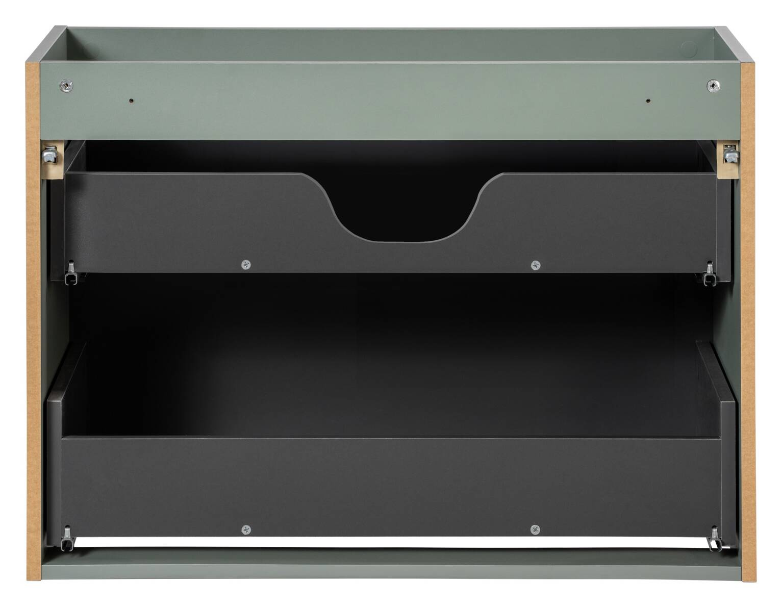 Praustuvo spintelė 80 cm LINE REED GREENElegantiška praustuvo spintelė 80 cm LINE REED GREEN (Comad) su dviem stalčiais, pagaminta iš laminuotos plokštės ir MDF, Reed Green spalvos su frezuotais vertikaliais varžtais. Puikiai tinka moderniems vonios kambariams, su sieniniu tvirtinimu ir tvirtinimo rinkiniu. Matmenys: Plotis (cm): 80 Gylis (cm): 39 Aukštis (cm): 57 Svoris (kg): 24 Techniniai duomenys: Spalva: Nendrių žalia Medžiaga: Laminuota plokštė / MDF plokštė Korpuso medžiaga: Laminuota plokštė Korpuso spalva: Nendrių žalia Fasadų medžiaga: MDF plokštė Fasadų spalva: Nendrių žalia Fasadų konstrukcija: Frezuoti vertikalūs grioveliai Reikalingas surinkimas: Taip Tvirtinimo kaiščiai pridedami: Taip Įtraukta Tvirtinimo rinkinys įtrauktas: Taip Montavimo viduje būdas: Pakabinimui ant sienos Stalčių kiekis: 2 stalčiai 1 stalčius Konstrukcija: Pilnas dugnas su išpjova galinėje juostoje – Rekomenduojama montuoti žemą sieninį sifoną – Sifonas neįtrauktas 1 stalčiaus prailginimas: 3/4 prailginimo 2 stalčiaus prailginimas: Pilno ištraukimo viršutinis stalčiaus organizatorius: Ne 1 stalčiaus svorio talpa: 3 Rankenos: Integruota Rankenų medžiaga: MDF Rankenų spalva: Nendrių žalia Pristatome elegantišką ir funkcionalią „Comad“ praustuvo spintelę LINE REED GREEN, kuri puikiai tiks bet kokiam moderniam interjerui. Sukurta su didžiausiu kruopštumu, kad atitiktų visus estetikos ir praktiškumo lūkesčius. Spintelės matmenys: 24 kg sverianti „Reed Green“ spintelė pagaminta iš aukštos kokybės laminuotos plokštės ir MDF. Jos korpusas ir fasadai pasižymi elegantiška frezuotų vertikalių griovelių struktūra, suteikiančia jai unikalaus charakterio. Spintelė turi du erdvius stalčius: kiekviename stalčiuje integruota „Reed Green“ spalvos MDF rankena, pabrėžianti dizaino vientisumą. Spintelė skirta montuoti prie sienos, o pridedami tvirtinimo kaiščiai ir tvirtinimo detalės, kad būtų lengva surinkti patiems. Suteikite savo vonios kambariui elegancijos ir funkcionalumo pasirinkdami „Comad“ LINE REED GREEN praustuvo spintelę!