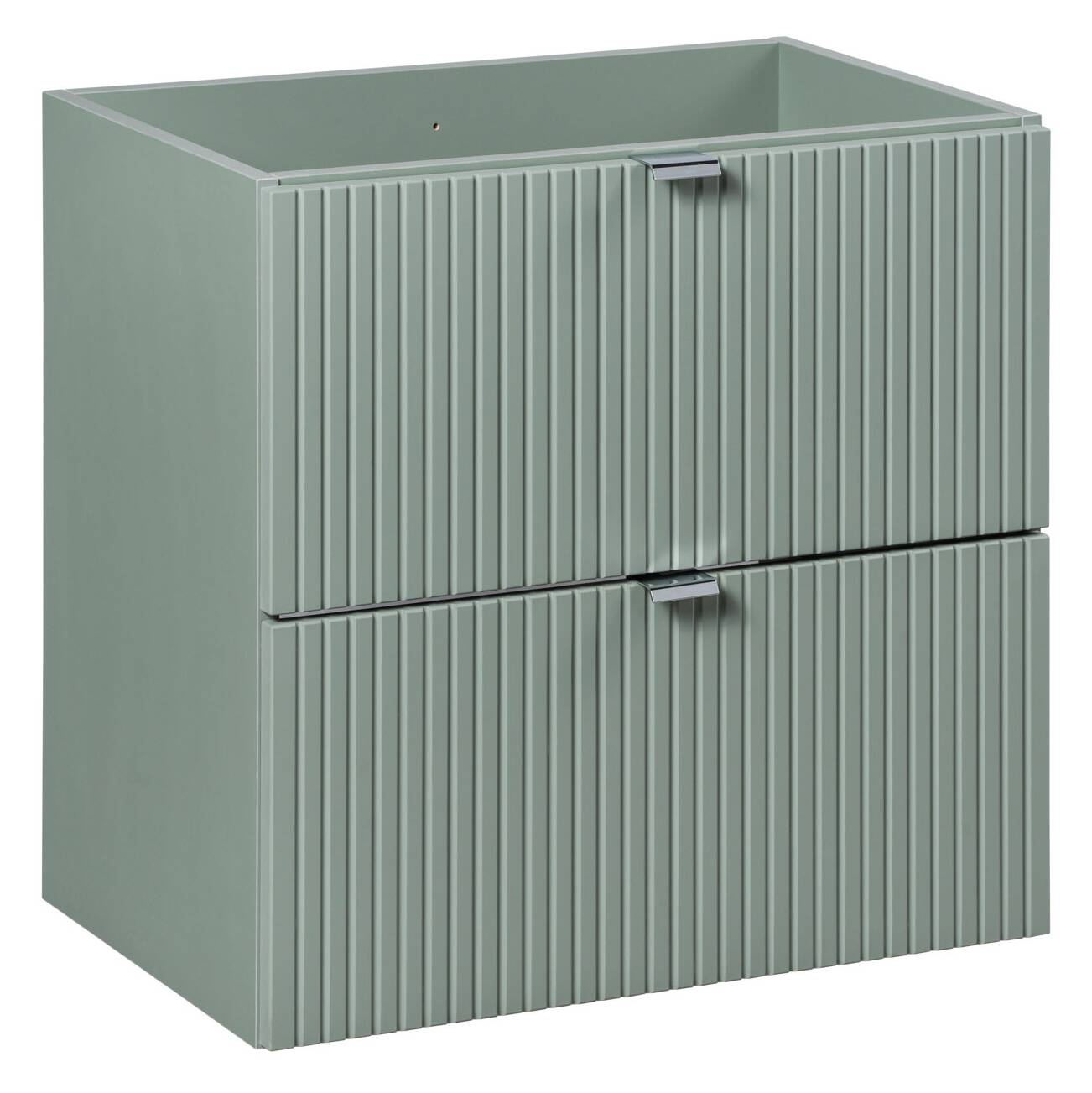 Pagaminta iš aukštos kokybės laminuotos plokštės ir MDF, ši spintelė žavi savo patvarumu ir atsparumu drėgmei, todėl puikiai tinka bet kuriam vonios kambariui. Žalios spalvos korpusas ir fasadai suteikia visam baldui modernų ir gaivų vaizdą. Fasadai puošti vertikaliais frezuotais grioveliais, pabrėžiančiais šio baldo eleganciją ir unikalumą.