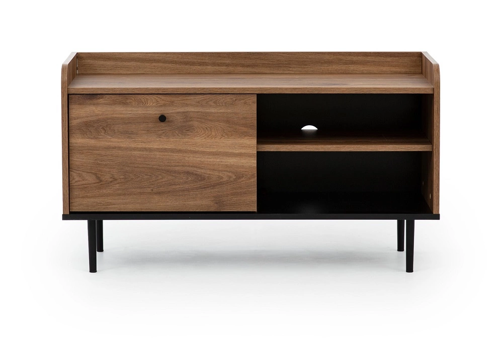 Apallo TV spintelė, 100 cm, brandy ąžuolo spalvos, „Castello“ spalvos, originalaus dizaino spintelės korpusas tvirtinamas ant metalinių kojelių, aukšti stalviršio kraštai