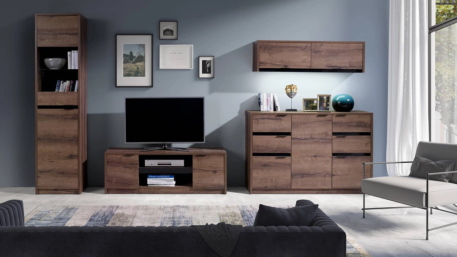 „Denver“ televizoriaus staliukas – puikus pasirinkimas tiems, kurie vertina klasikinį dizainą. Madingos spalvos ir kruopšti indauja suteiks elegancijos ir estetinio patrauklumo bet kokiam interjerui. Išskirtiniai televizoriaus staliuko bruožai – blizgūs juodi įdėklai, sukuriantys trimatį efektą. Stilingos rankenėlės suteikia televizoriaus staliukui išties įspūdingą išvaizdą. „Denver“ televizoriaus staliukas – tai universalus baldas, kuris puikiai papildys svetainės, darbo kambario, paauglio kambario ar net prieškambario estetiką, suteikdamas erdvei elegancijos ir modernaus stiliaus. Televizoriaus staliukas pagamintas iš aukštos kokybės laminuotos plokštės, kuri yra atspari išoriniams veiksniams, tokiems kaip įlenkimai, smūgiai ir įbrėžimai. Metalinės rankenėlės spintelėse ir stalčiuose yra labai patvarios ir tvirtos. Tiksli apdaila ir dėmesys detalėms užtikrina, kad „Denver“ televizoriaus staliukas daugelį metų išlaikys savo gražią išvaizdą neprarandant funkcionalumo.