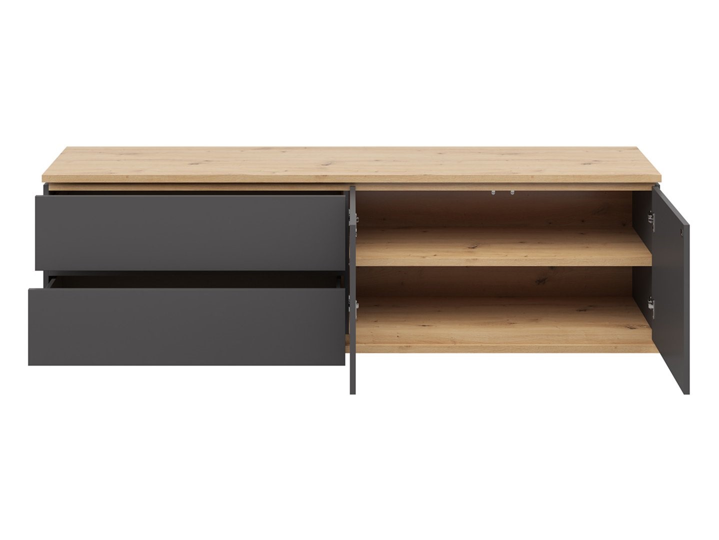 YAMAEL dvidurė televizoriaus spintelė su dviem stalčiais, 184 cm, grafito spalvos/artisan ąžuolo spalvos