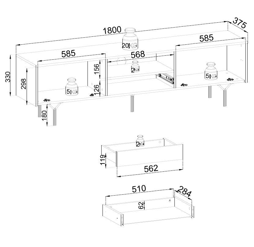 „Raven RTV180 Glamorous Loft“ spintelė – turi du varstomus spintelių priekius, nišą ir stalčių.