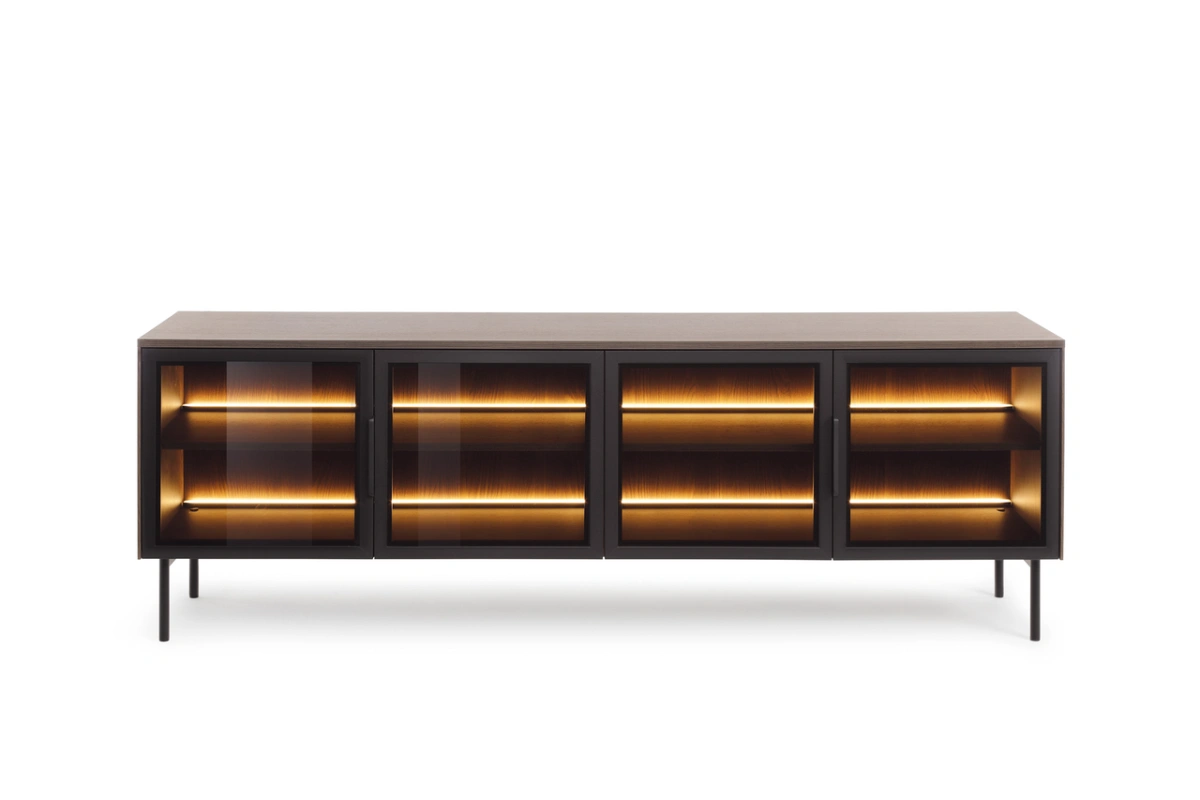 Šioje kolekcijoje yra dvi komodos, vitrina ir televizoriaus staliukas – ieškokite „Lumi“
