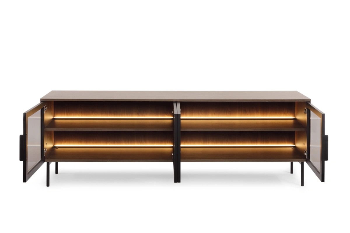 „Lumi 4D“ televizoriaus spintelė su grūdintu dekoratyviniu stiklu, fleitos, „Dunin Oak“