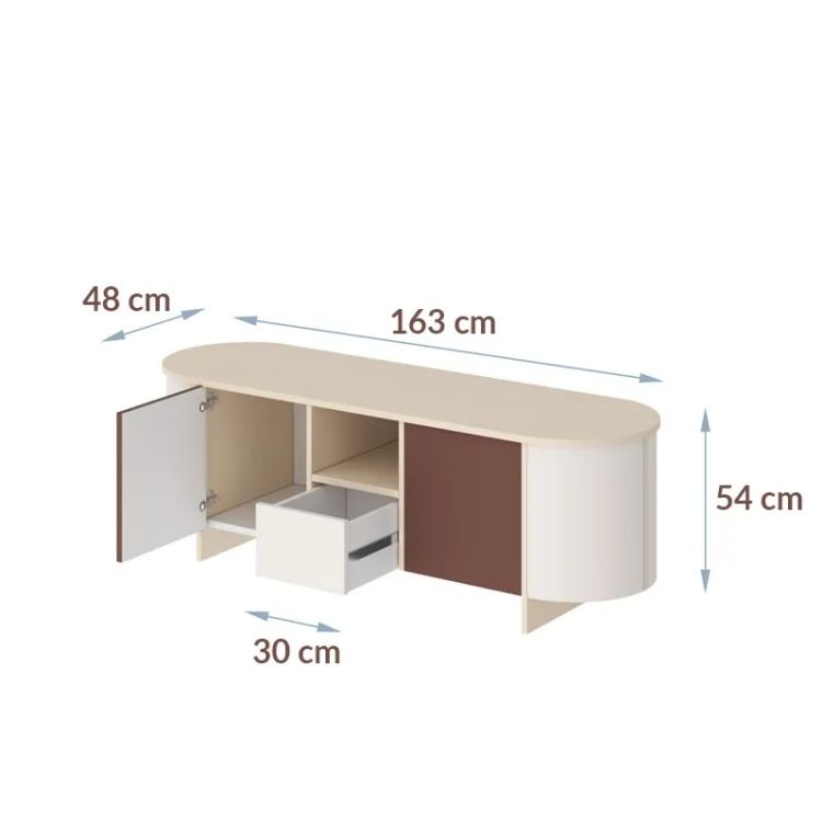 „Mileto“ televizoriaus staliukas iš „Amore Colore“ kolekcijos derina modernią estetiką ir funkcionalumą, todėl jis tampa bet kurio elegantiško interjero traukos centru. Ovali forma ir subtiliai užapvalinti šonai su dekoratyvinėmis juostelėmis suteikia jam lengvumo ir rafinuotumo. Matinis, švelnus akrilinis paviršius ne tik pabrėžia prabangią išvaizdą, bet ir pasižymi savybėmis, apsaugančiomis nuo pirštų atspaudų, todėl jį lengva valyti.