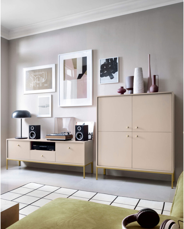 Mono TV spintelė MRTV154, durys, stalčius, niša, smėlio spalvos/auksinis rėmas