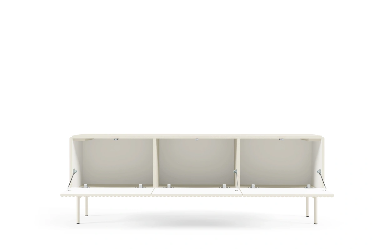 Daugiafunkcis televizoriaus stovas – su trimis pakreipiamomis spintelėmis.