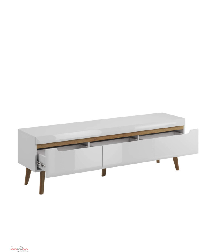 Nordi NRTV160 TV spintelė, stalčiai, balta blizgi/Riviera ąžuolas