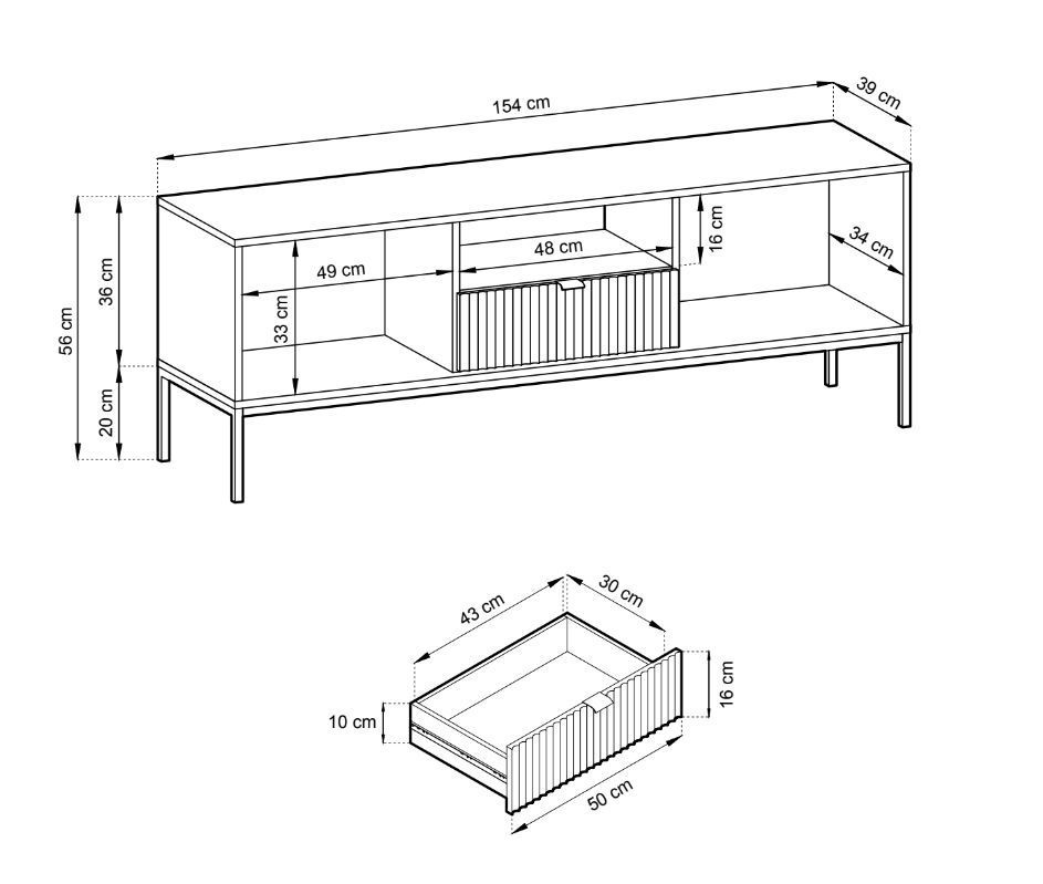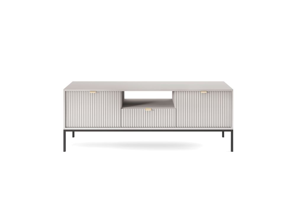 „Nova RTV-154“ pilka televizoriaus spintelė – turi dvi spinteles ir papildomą stalčių.