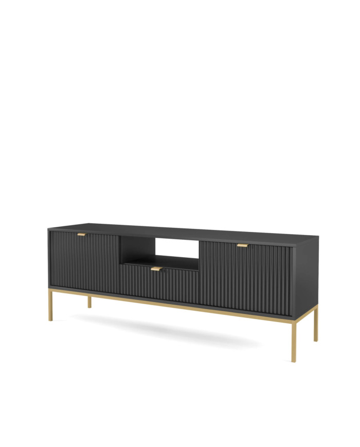 Nova RTV154 TV spintelė, durelėmis, stalčiumi, niša, juodas/auksinis rėmas
