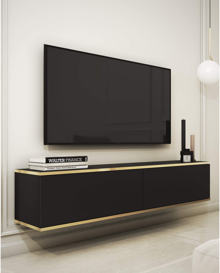 Oro 135 TV spintelė, durelėmis, montuojama ant sienos, juoda/auksinė
