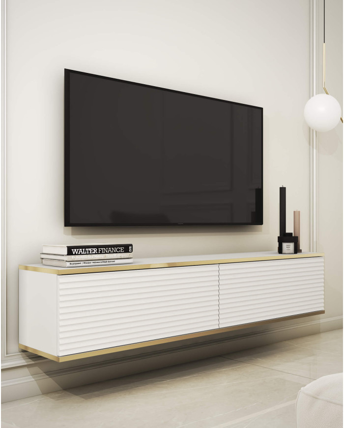 Oro 135 MDF TV spintelė, durelėmis, montuojama ant sienos, balta/auksinė