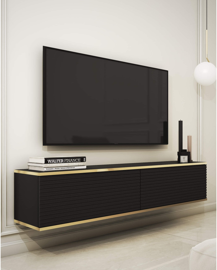 Oro 135 MDF TV spintelė, durelėmis, montuojama ant sienos, juoda/auksinė