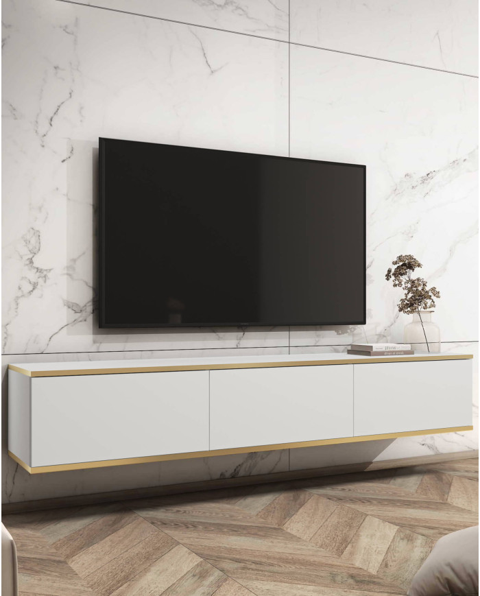 Oro 175 TV spintelė, durelėmis, montuojama ant sienos, balta/auksinė