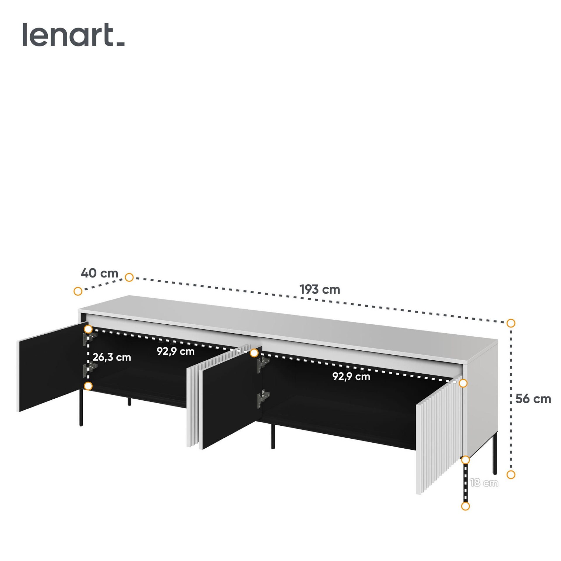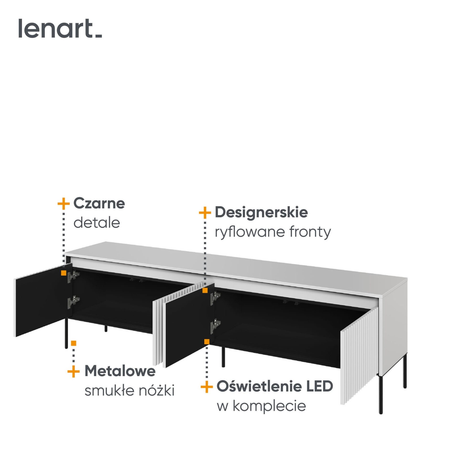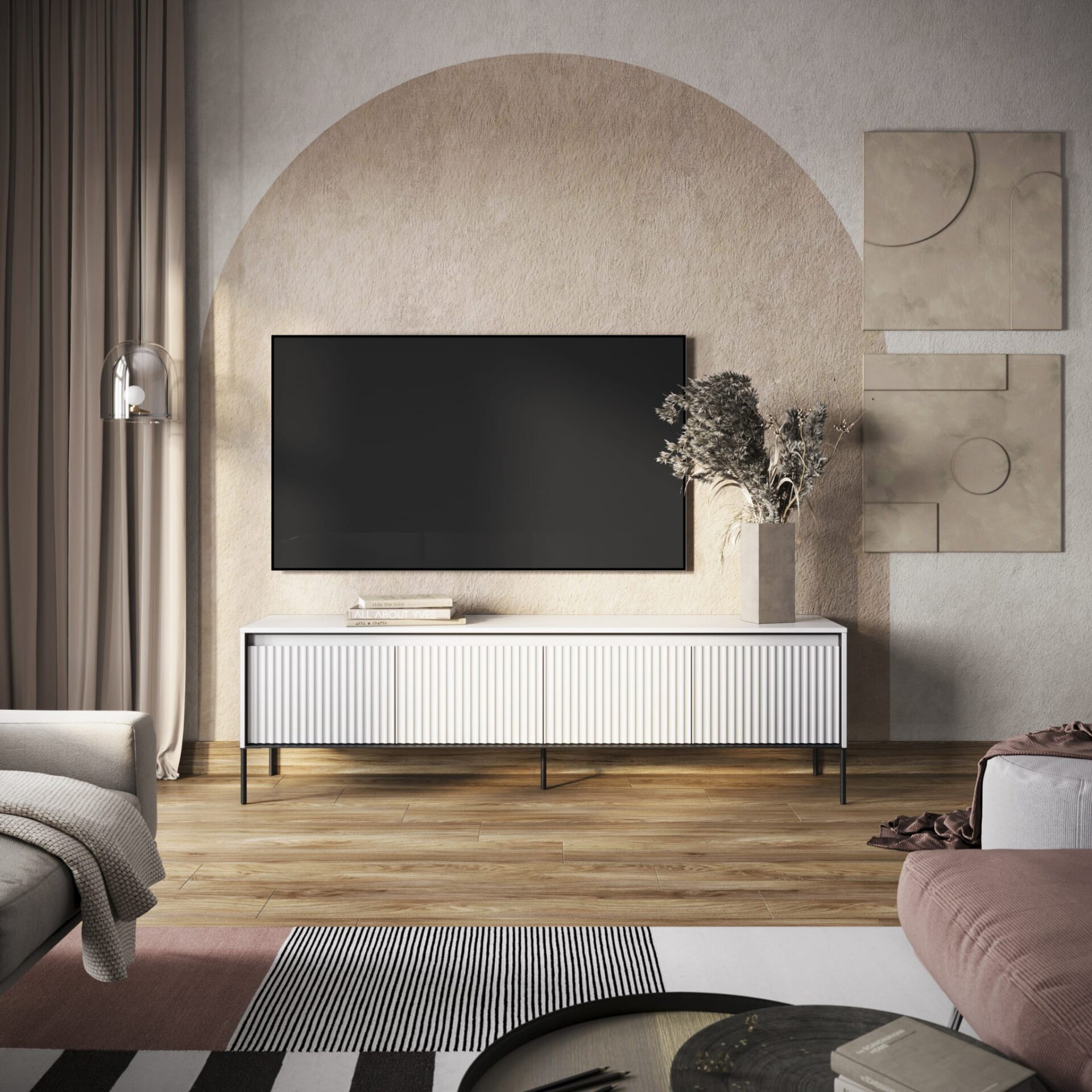 Būkite pirmas aprašęs “TV spintelė su grioveliais TREND 06, baltos/juodos kojelės”