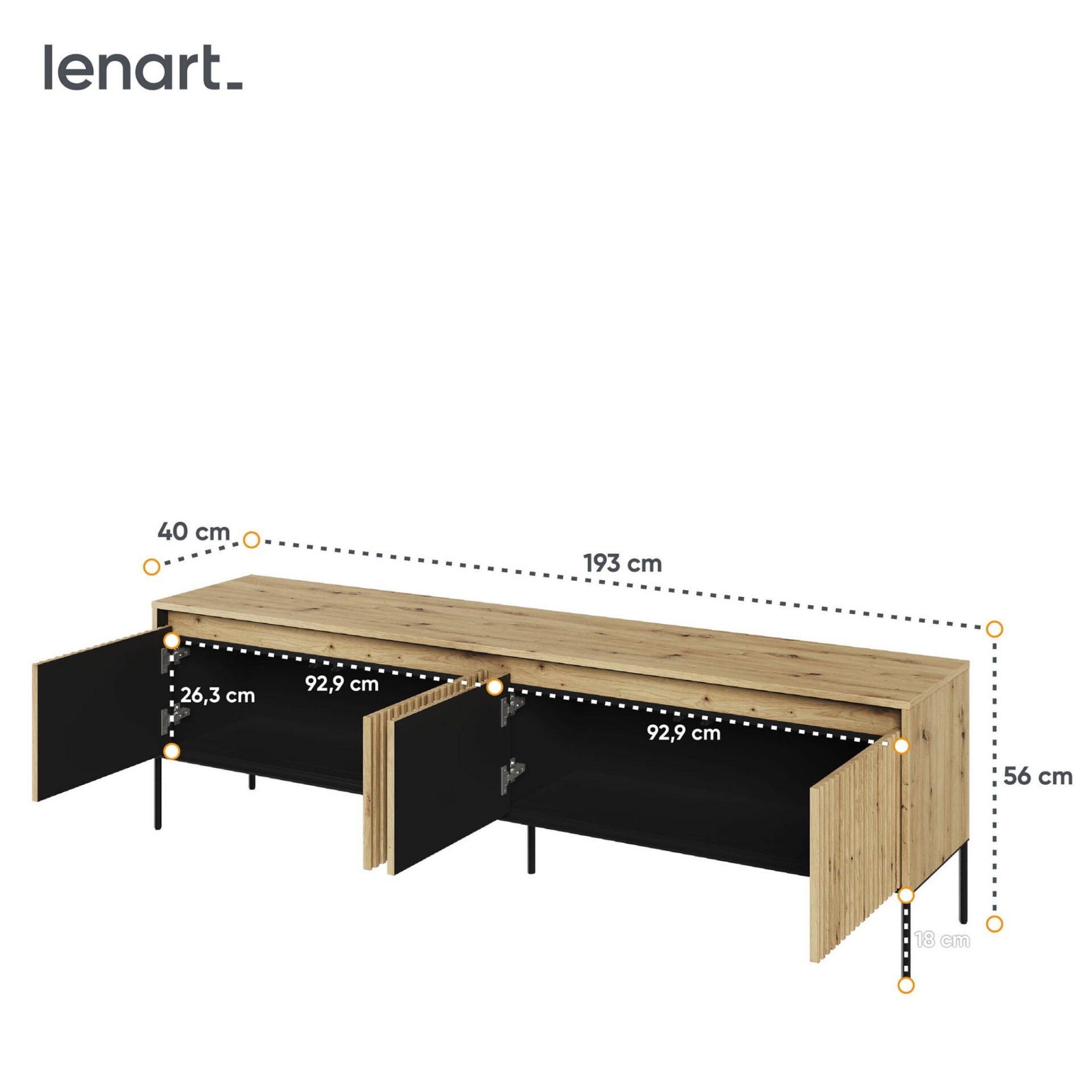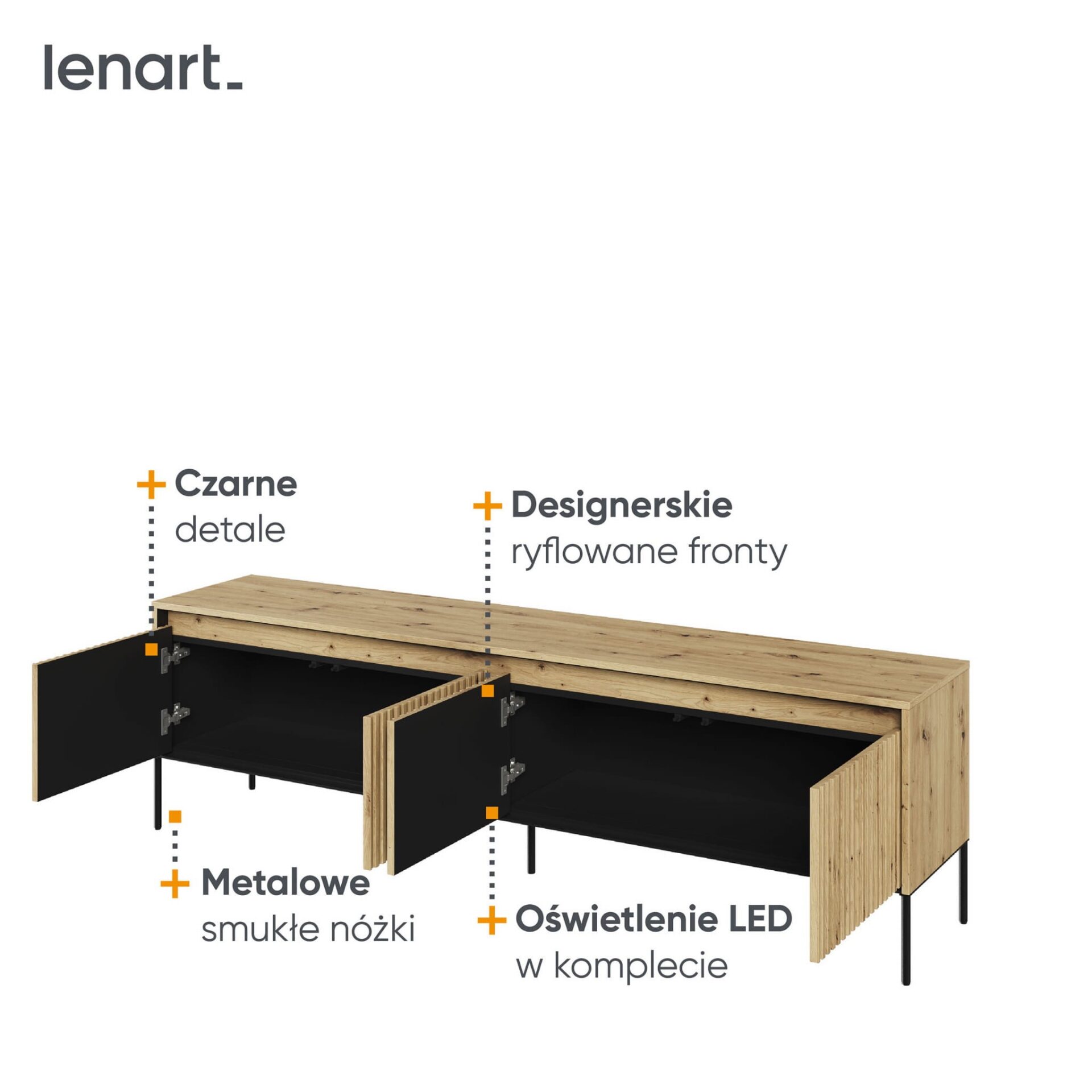 Būkite pirmas aprašęs “TREND 06 griovelių TV spintelė, ąžuolo dirbiniai / juodos kojelės”