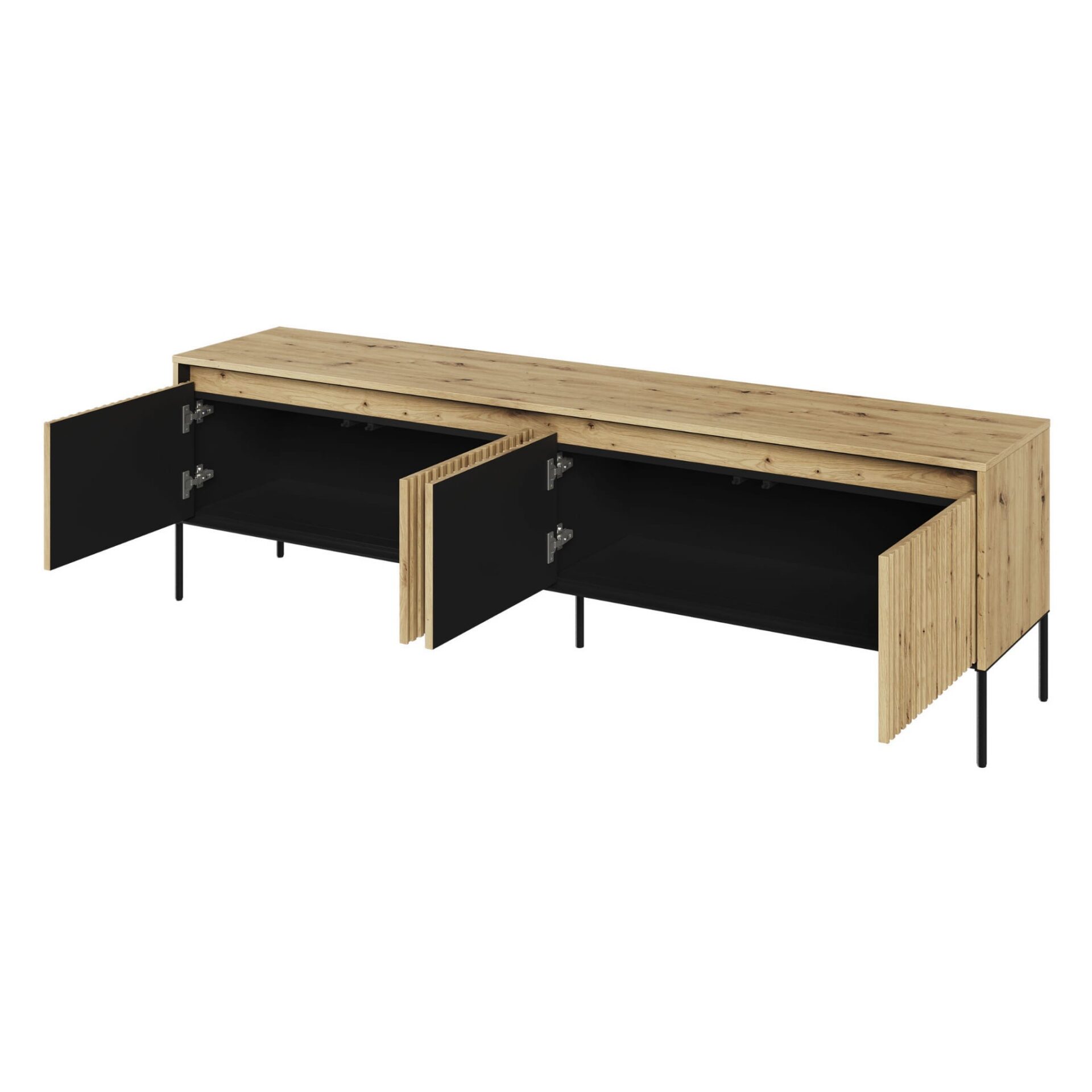 TREND 06 griovelių TV spintelė, ąžuolo dirbiniai / juodos kojelės