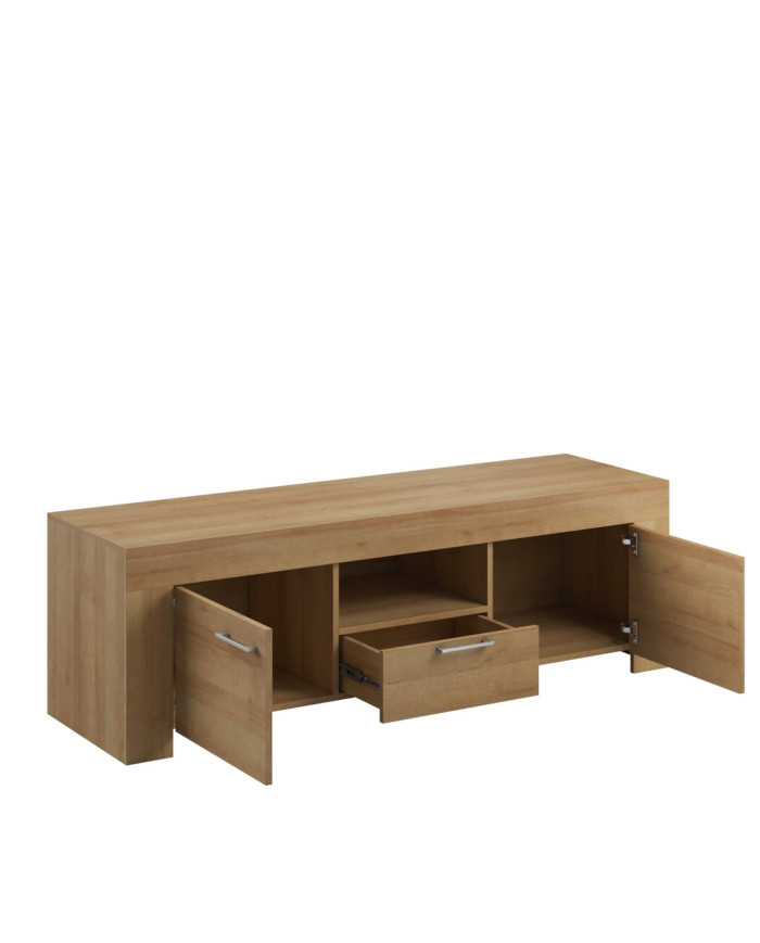 „Sky SRTV 155“ televizoriaus spintelė su P155 pakabinama lentyna, durelėmis, stalčiumi, niša, lentyna, „Riviera Oak“