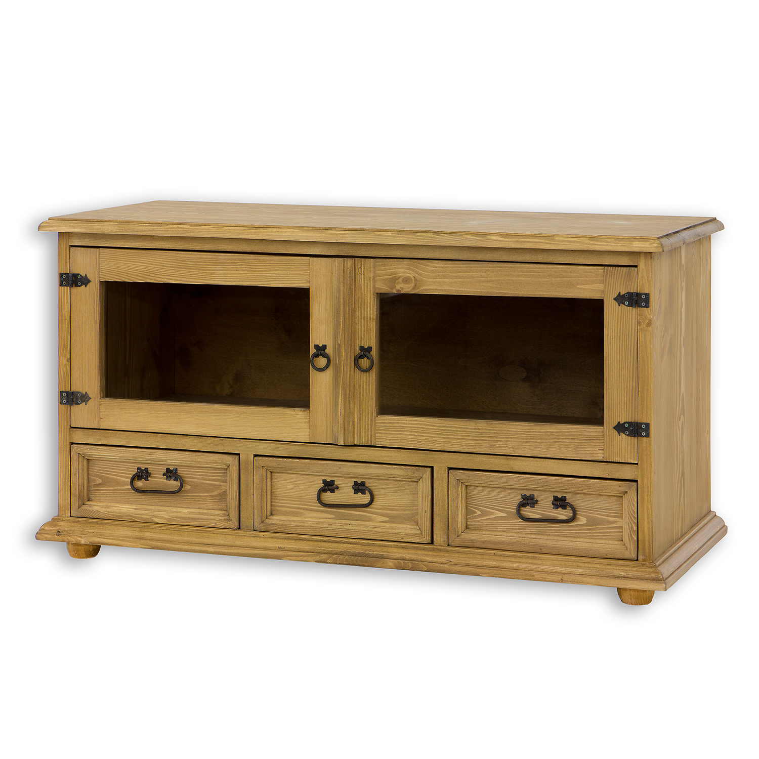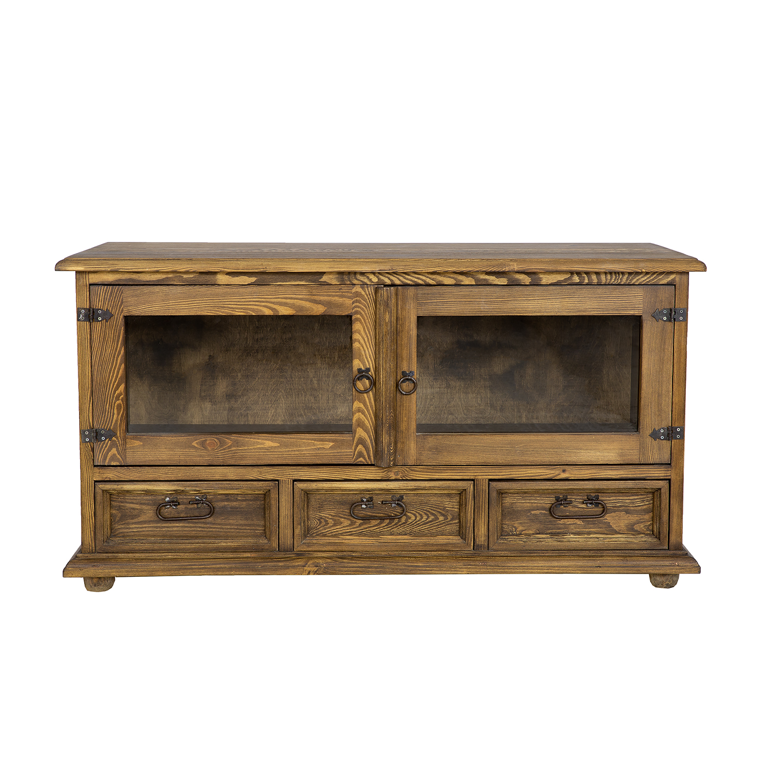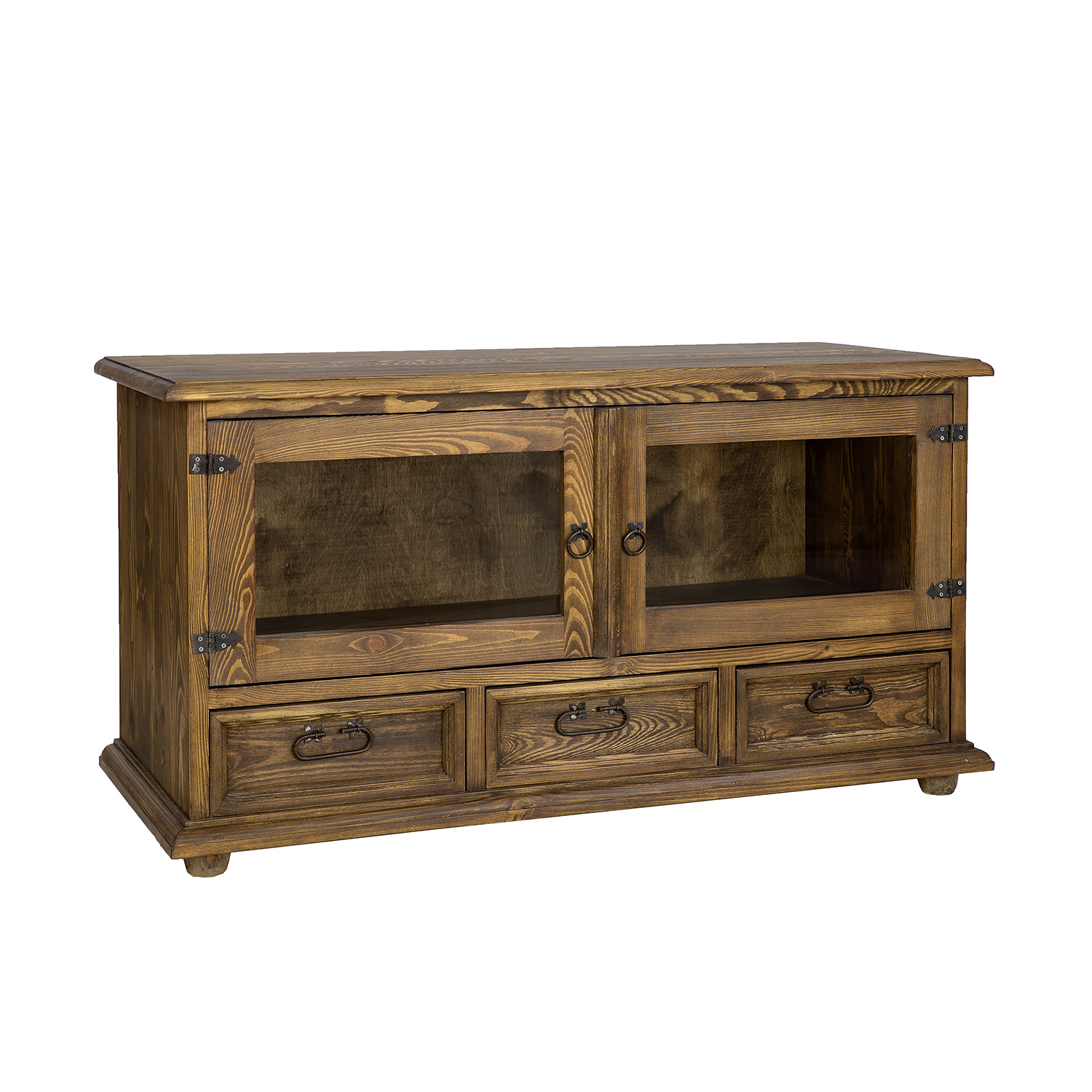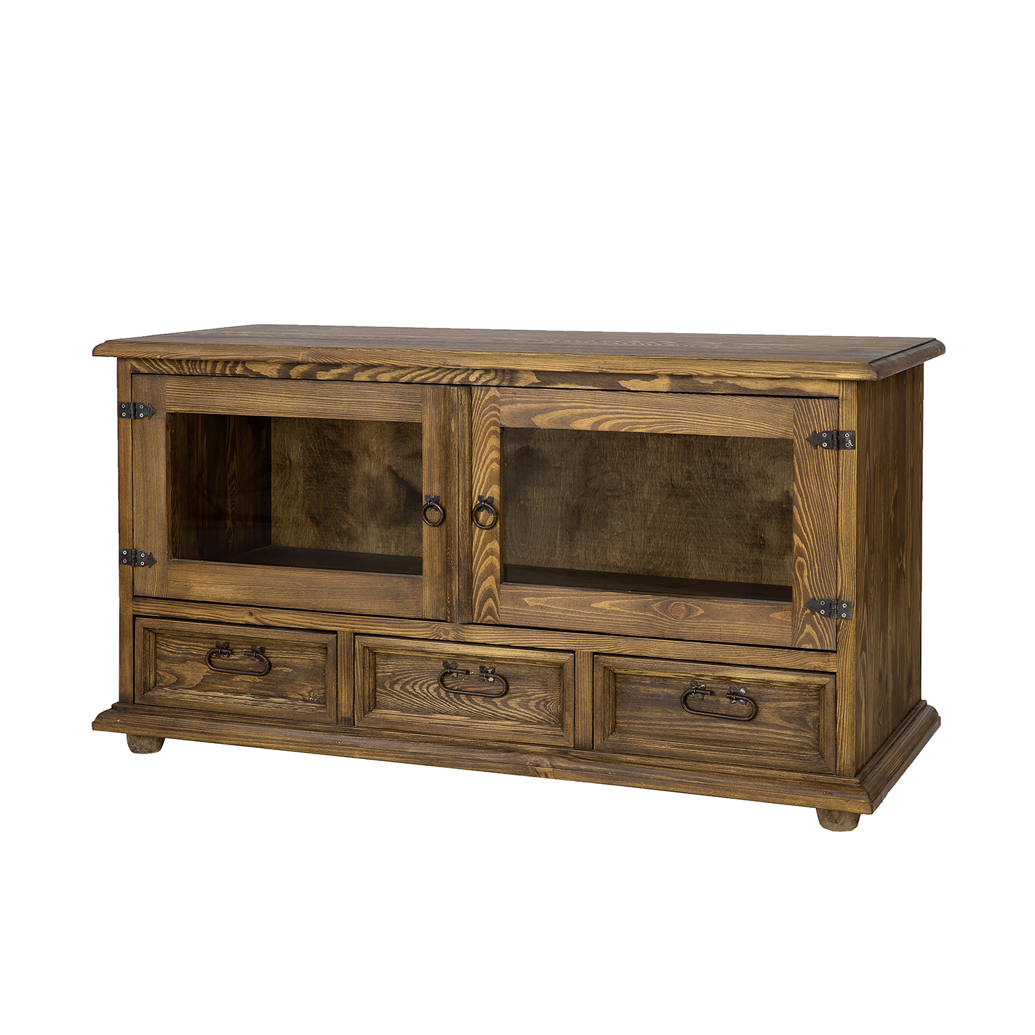 Vaškuotas, kaimiško stiliaus RV705 televizoriaus staliukas pagamintas iš tvirtos pušies medienos. Jis stovi ant medinių rutulio formos kojelių. Šis medinis staliukas turi lentyną, kuri atsidaro stiklinėmis dvigubomis durelėmis. Apatinėje dalyje yra trys patogūs stalčiai ant medinių bėgelių. Spintelė pasižymi patvaria ir tvirta konstrukcija. Jos gamyboje buvo naudoti rankų darbo metaliniai vyriai ir rankenos su sendinta apdaila. RV705 staliukas bet kokiam interjerui suteiks unikalios atmosferos, kupinos šilumos ir namų jaukumo.