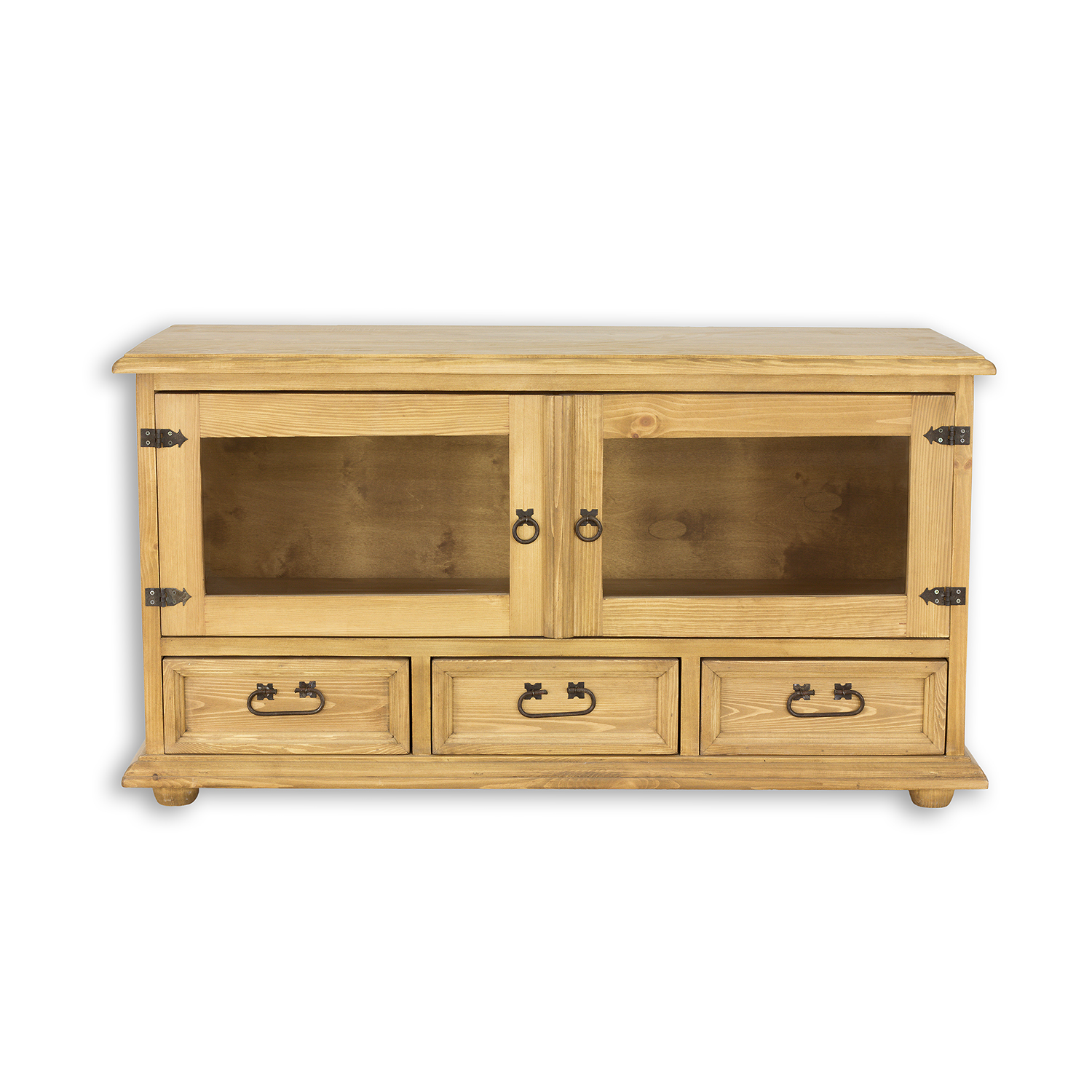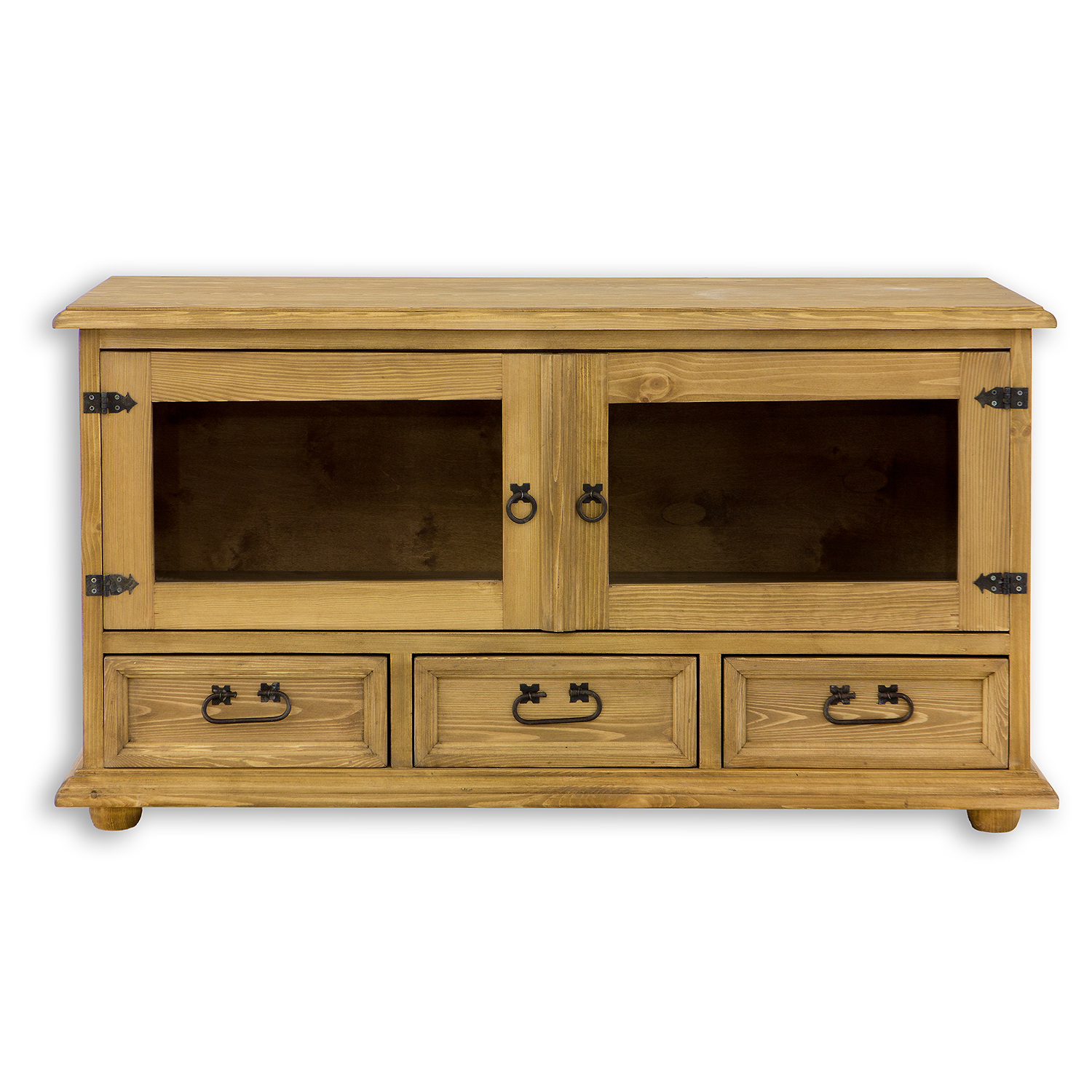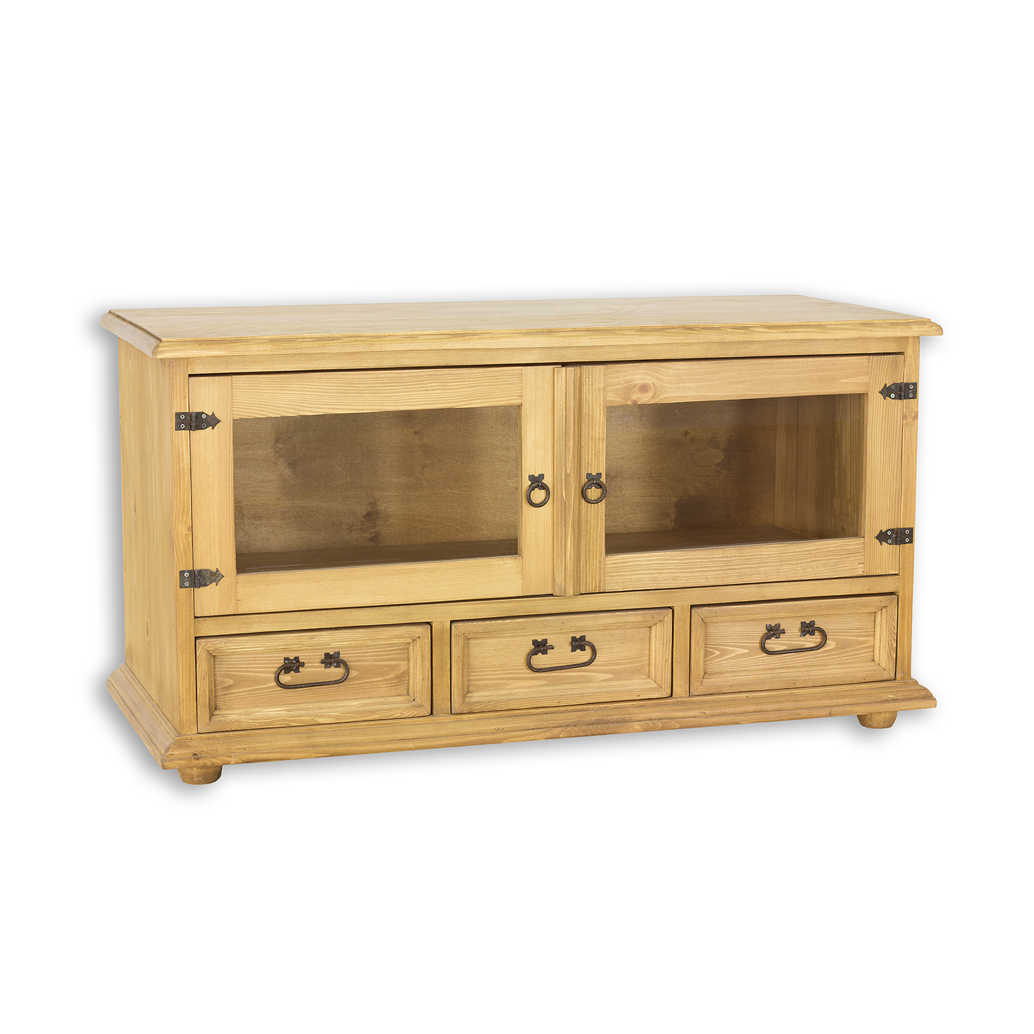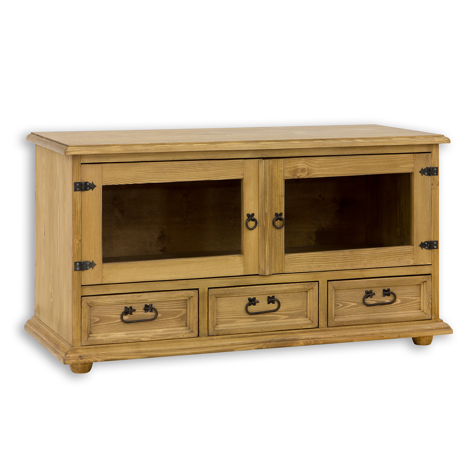 Vaškuotas, kaimiško stiliaus RV705 televizoriaus staliukas pagamintas iš tvirtos pušies medienos. Jis stovi ant medinių rutulio formos kojelių. Šis medinis staliukas turi lentyną, kuri atsidaro stiklinėmis dvigubomis durelėmis. Apatinėje dalyje yra trys patogūs stalčiai ant medinių bėgelių. Spintelė pasižymi patvaria ir tvirta konstrukcija. Jos gamyboje buvo naudoti rankų darbo metaliniai vyriai ir rankenos su sendinta apdaila. RV705 staliukas bet kokiam interjerui suteiks unikalios atmosferos, kupinos šilumos ir namų jaukumo.