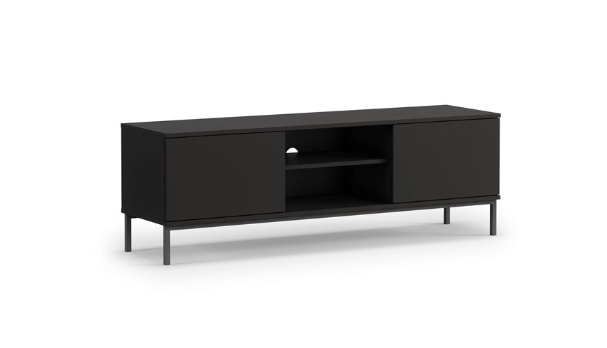 150 cm pločio juodas „Tutti“ televizoriaus staliukas – stilingas, minimalistinio dizaino baldas.