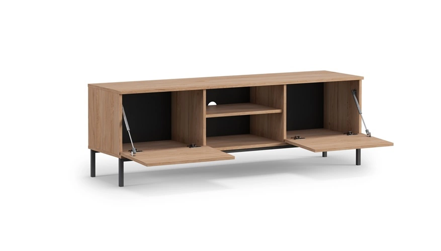 Televizoriaus staliukas turi dvejas žemyn atsidarančias dureles. Stovo centre esanti įduba puikiai tinka televizoriaus įrangai ar žaidimų konsolei. „Tutti“ televizoriaus staliukas sukurtas atsižvelgiant į funkcionalumą ir praktiškumą, siūlant daug vietos daiktams susidėti. Nesenstanti juoda spalva papildys klasikinį interjerą, todėl „Tutti“ televizoriaus staliukai puikiai tinka erdviems, šviesiems ir modernaus stiliaus interjerams. Modernios ir industrinio stiliaus televizoriaus spintelės su elegantiška apdaila puikiai papildys bet kokį interjerą.