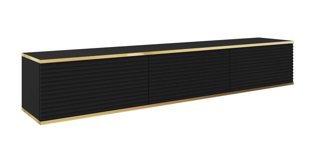 Oro prie sienos montuojama arba pastatoma televizoriaus spintelė 135 arba 175 cm, juoda, grioveliais iš MDF plokštės