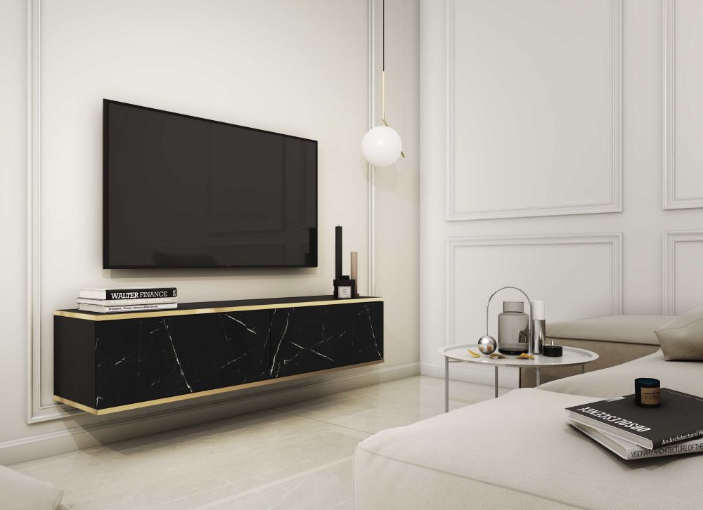 Prie sienos montuojama arba pastatoma televizoriaus spintelė Oro 135 arba 175 cm marmuras