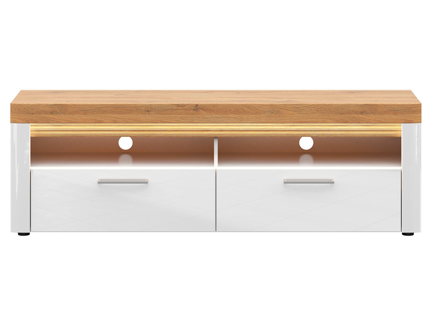 TV spintelė su dviem stalčiais HORTON 166,5 cm, auksinio ąžuolo „Grandson“ / baltos blizgios spalvos